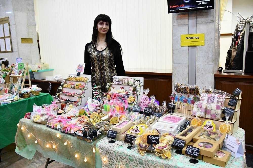 Среди участников были и новички. Например, впервые выставила свои работы мастерица Татьяна: до участия в выставке она радовала домашними имбирными пряниками лишь семью и близких, которые, собственно, и посоветовали ей выходить на большую аудиторию. Дарья также оказалась на «Палитре мастеров» впервые, она выставила свои мыльные зарисовки: мыло в виде корзинки с ягодами, мыло-гамбургер, роллы, хинкали, шаурма и прочее. Каждую композицию Дарья делает вручную, не штампует.