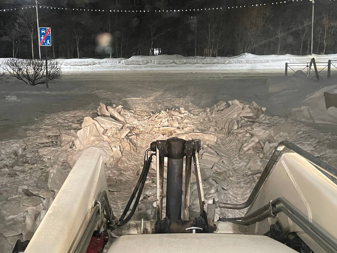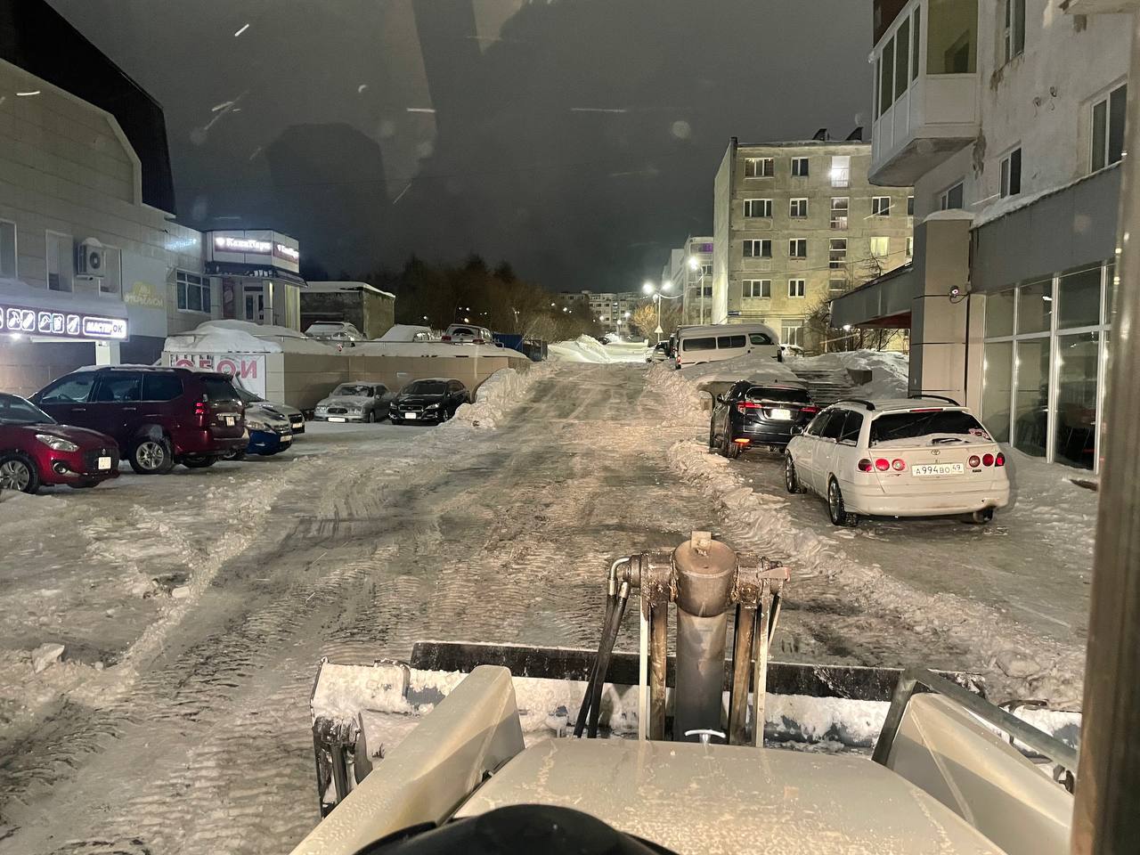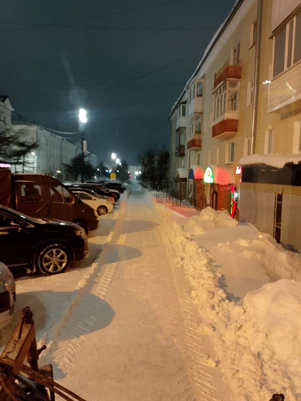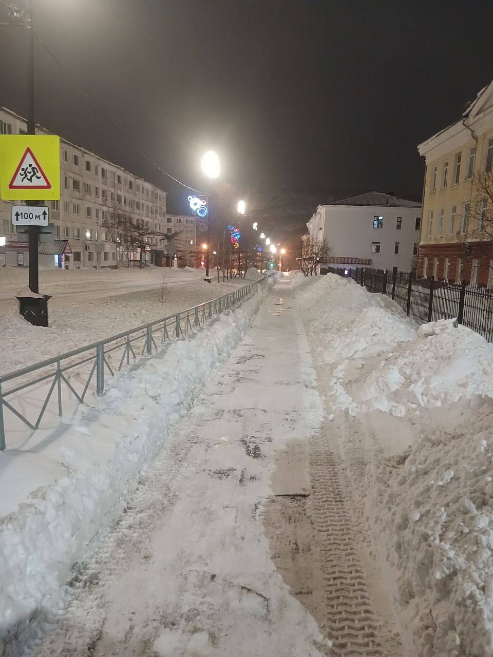 Ночью бригады КЗХ активно расчищали тротуары на площади Комсомольской и Горького, улицах Нагаевской, Билибина и Коммуны, проезд к гимназии № 14 и придомовые территории на проспекте Карла Маркса, 62, 62б, 62б.