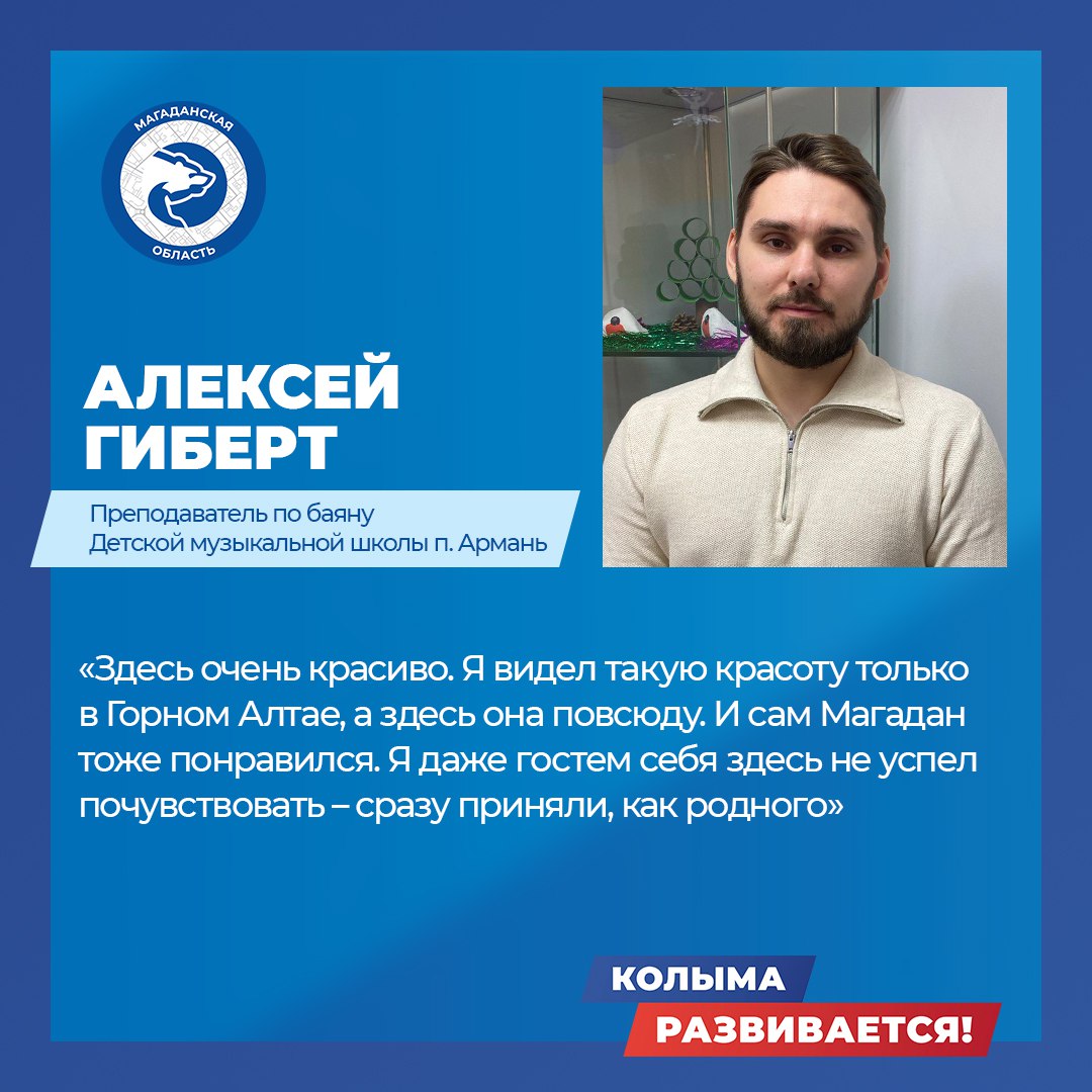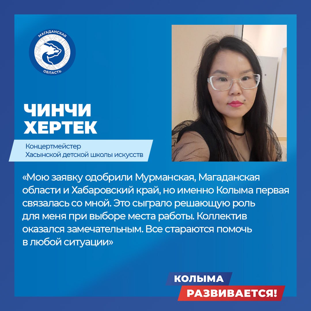 В 2025 году к работе в Магаданской области приступили восемь земских работников культуры. Это преподаватели и концертмейстер для Детских школ искусств поселков Сеймчан, Ягодное, Ола, Армань, Палатка, Усть-Омчуг, а также режиссер для Среднеканской клубной системы.