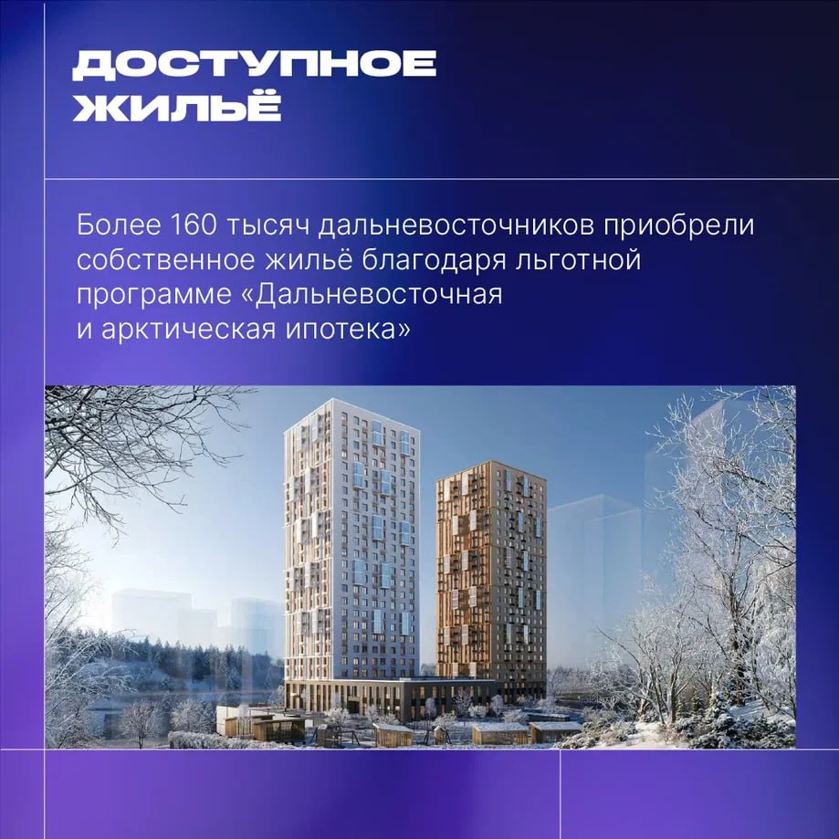 Стало: льготная дальневосточная и арктическая ипотека под 2%. За пять лет построено в три раза больше квартир, чем раньше.