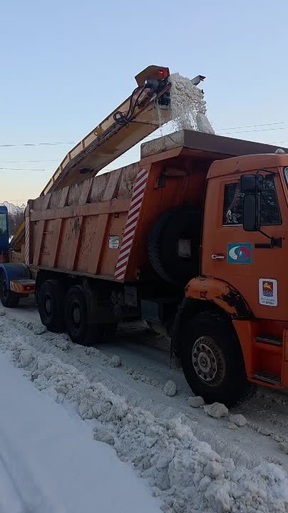 грузит снег, расчищает заезды, остановочные карманы на Пролетарской, Якутской, Гагарина, в проезде Карла Маркса – Пролетарской;