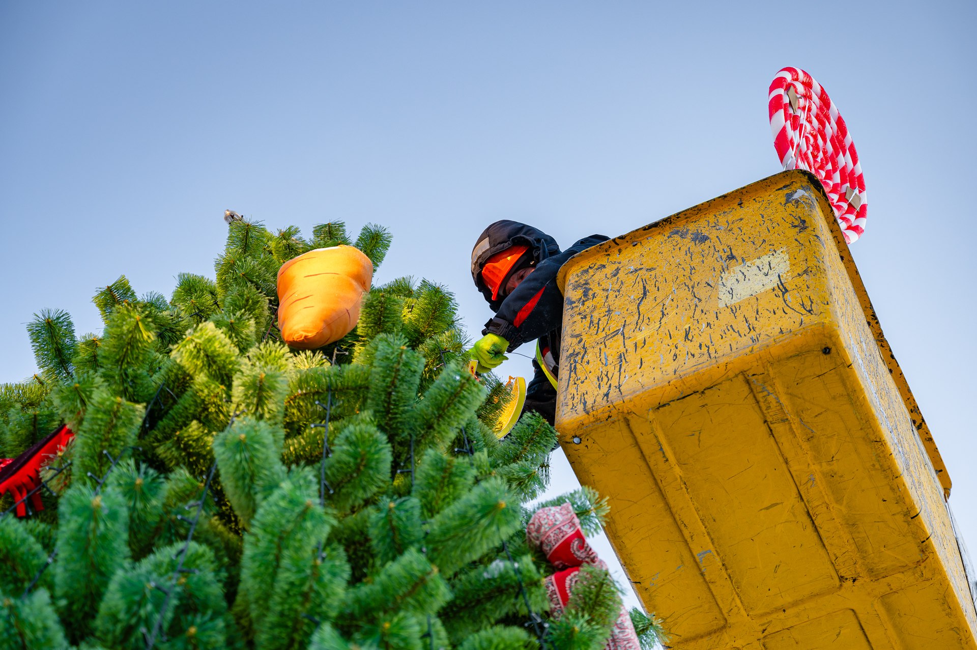 Народное голосование определило 10 победителей, а сотрудники Горсвета помогли повесить игрушки на елки.