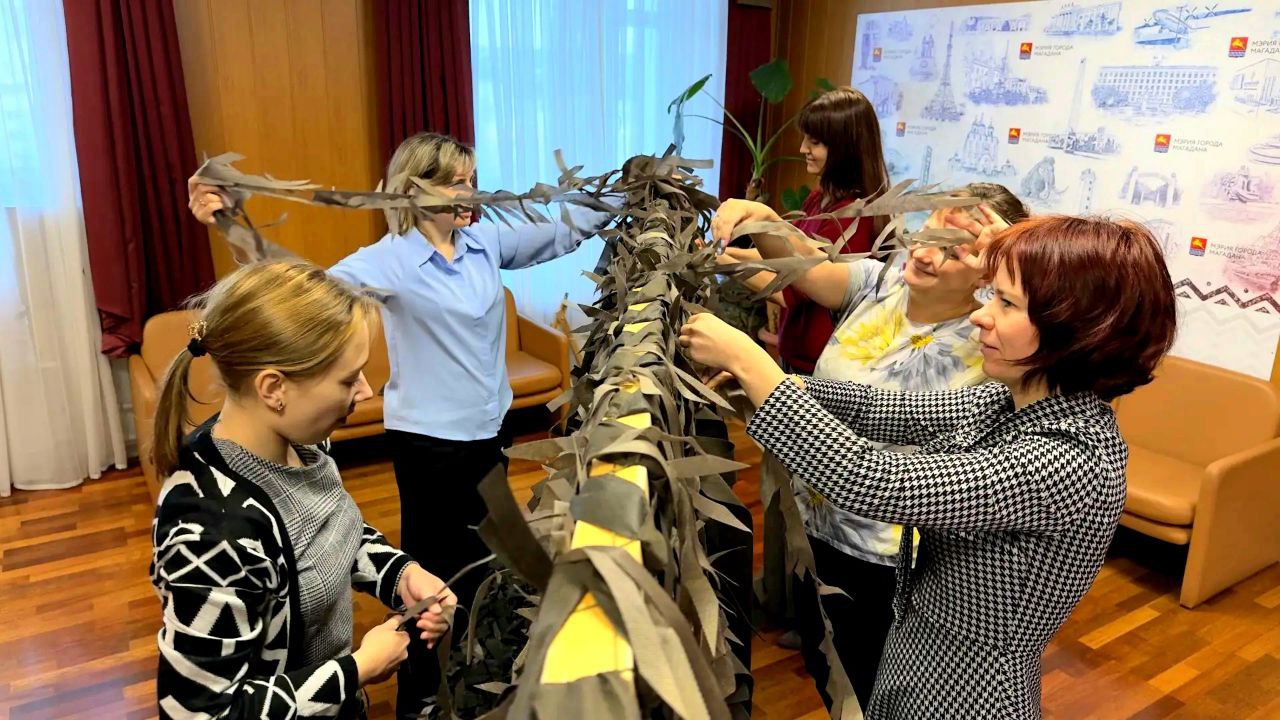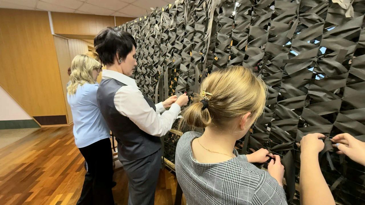 Сегодня с коллегами вплели победные ленточки в юбилейную маскировочную сеть