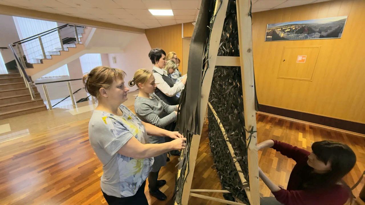 Рамку для плетения маскировочных сетей мы установили в городской администрации в конце марта этого года. За это время наши девушки сплели 50 маскировочных сетей, большая часть из которых увеличенного размера – 27 квадратных метров. Одна из сетей стала адресной – защитное полотно цвета «чернозем» изготовили по заказу бойца за рекордные полтора дня и уже отправили в зону СВО.