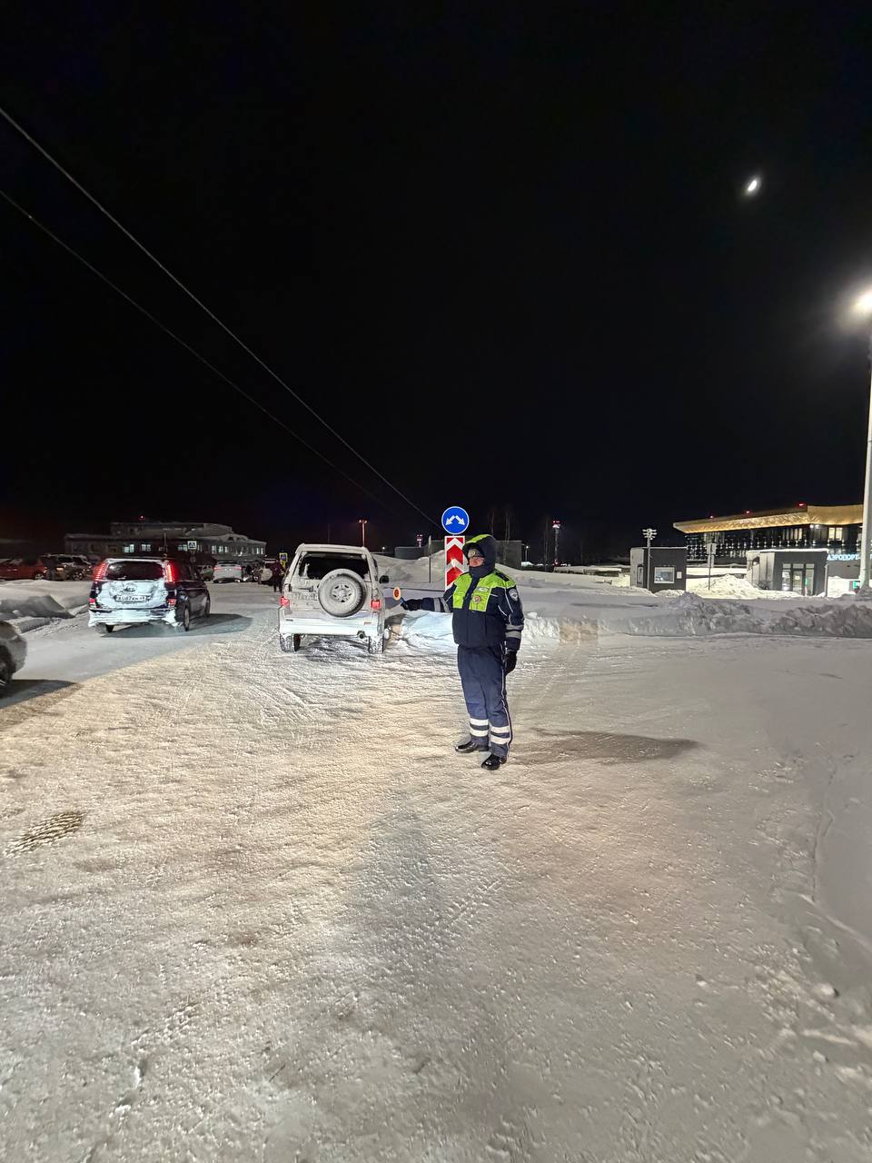 Сотрудники Госавтоинспекции из Хасынского округа несколько часов регулируют въезд на парковку перед аэропортом.