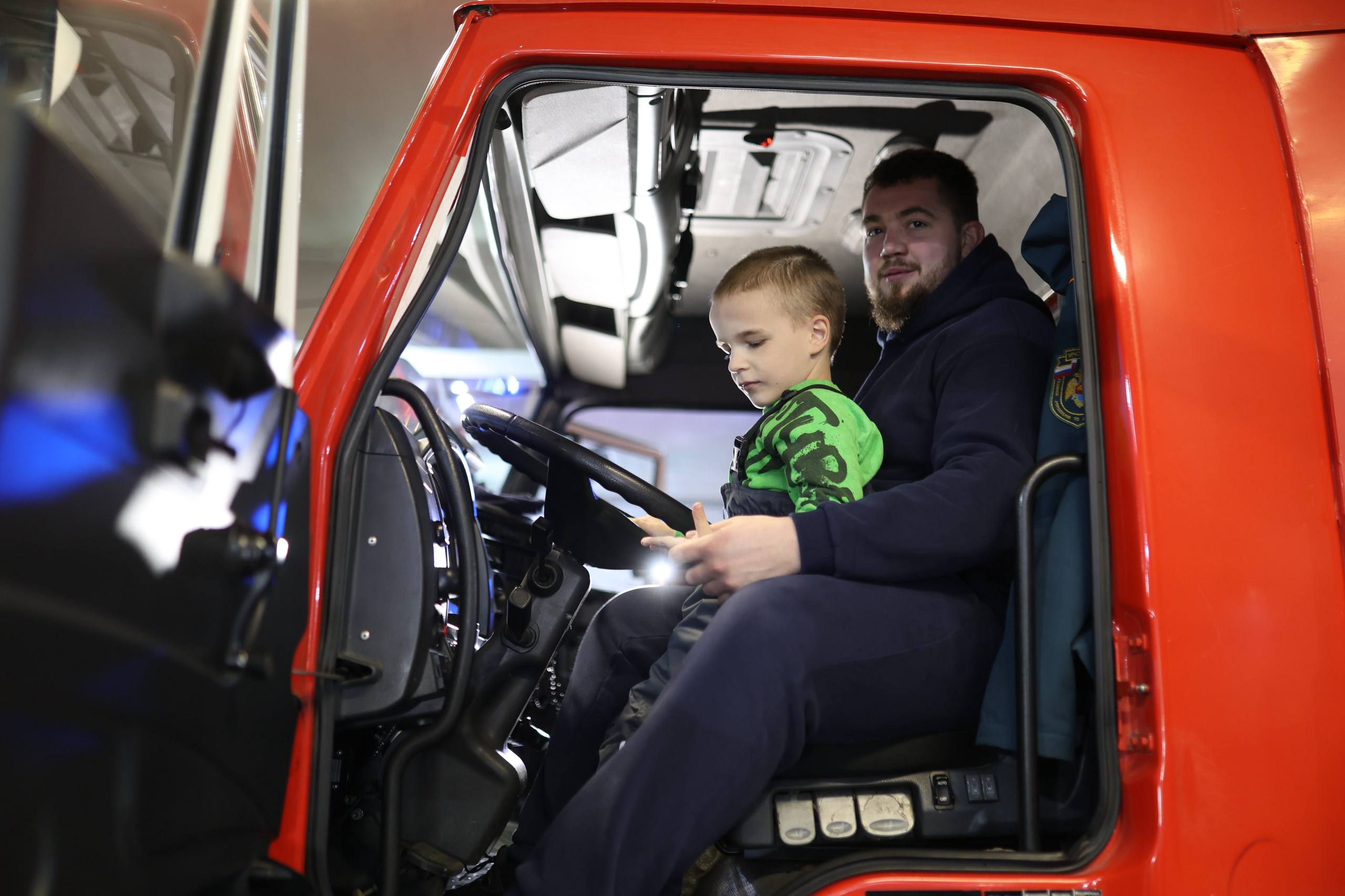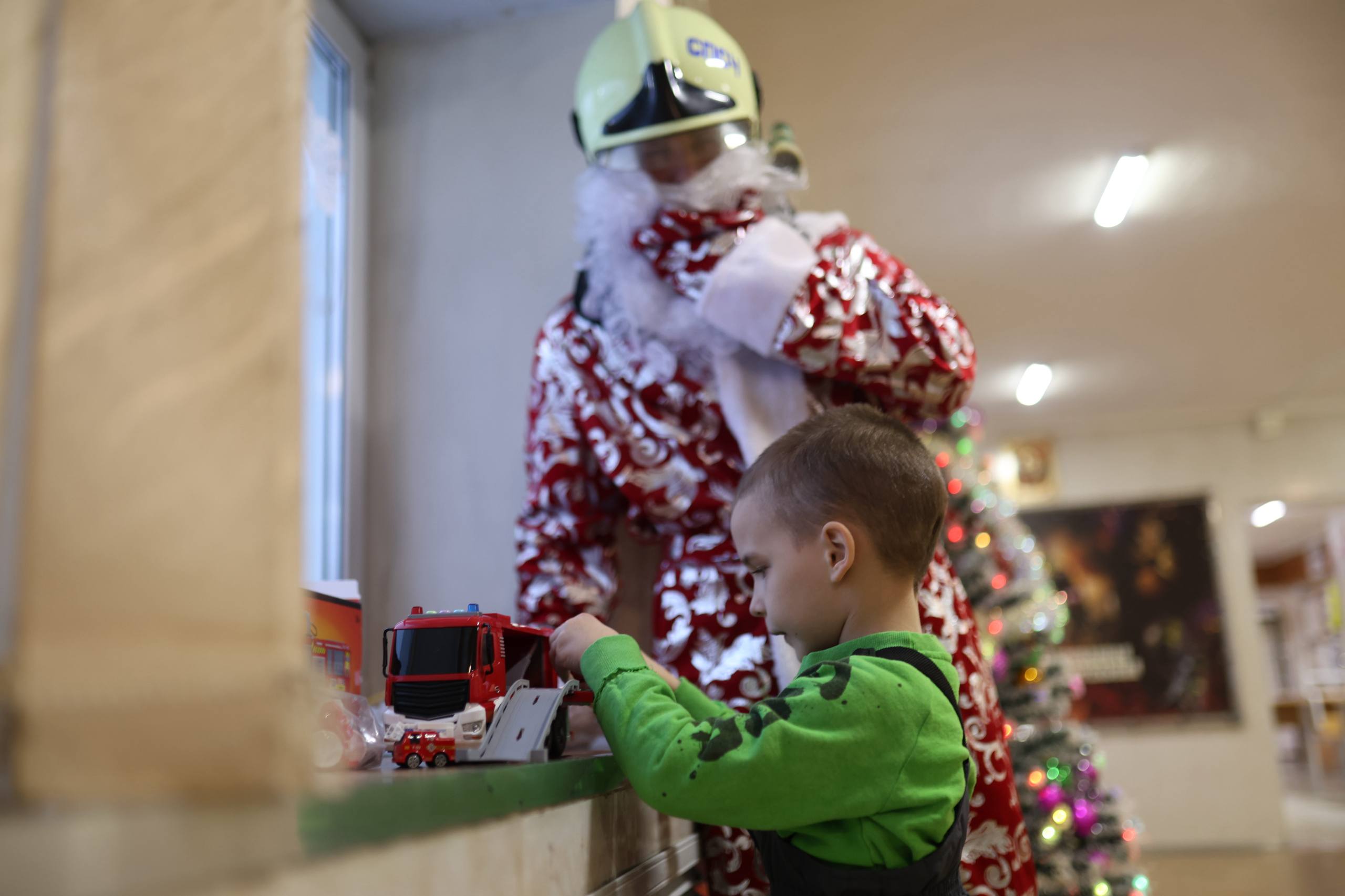 Савелию 6 лет. Он живет в Магадане и очень хотел игрушечную пожарную машину. Ему вручил ее Дед Мороз в пожарной части и провел экскурсию.