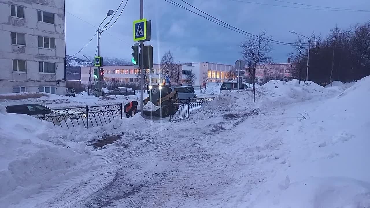 В Магадане городские службы в ежедневном режиме, а также ночью продолжают интенсивную расчистку от снега участков улично-дорожной сети.