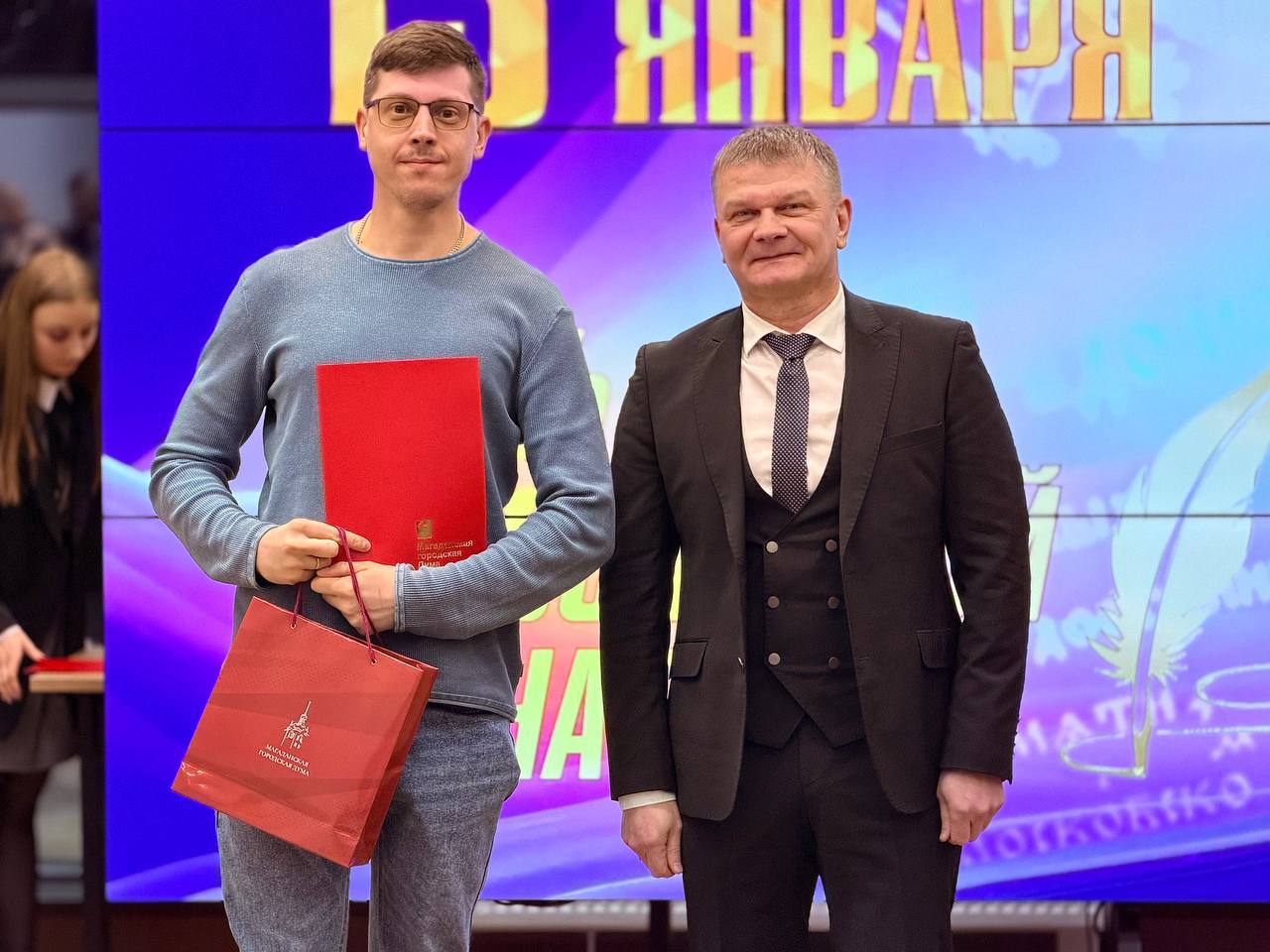 Благодарность председателя Магаданской городской Думы за добросовестный труд и значительный вклад в развитие телерадиовещания на территории муниципального образования «Город Магадан» получил Кателкин Никита Александрович.