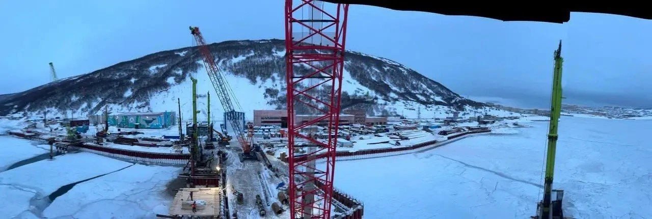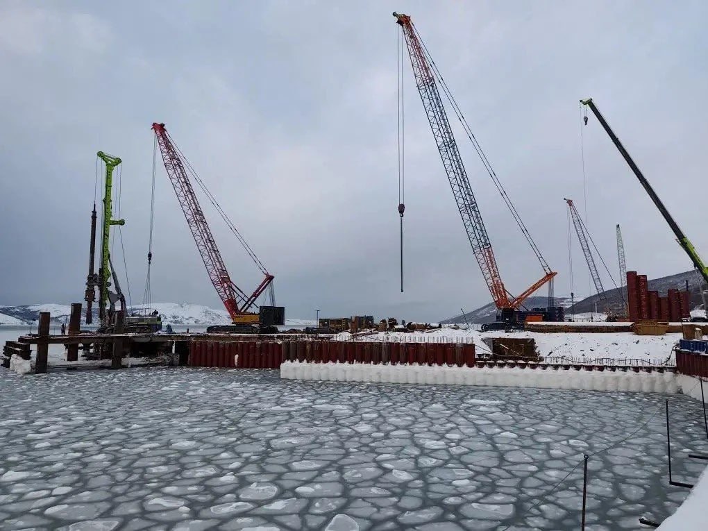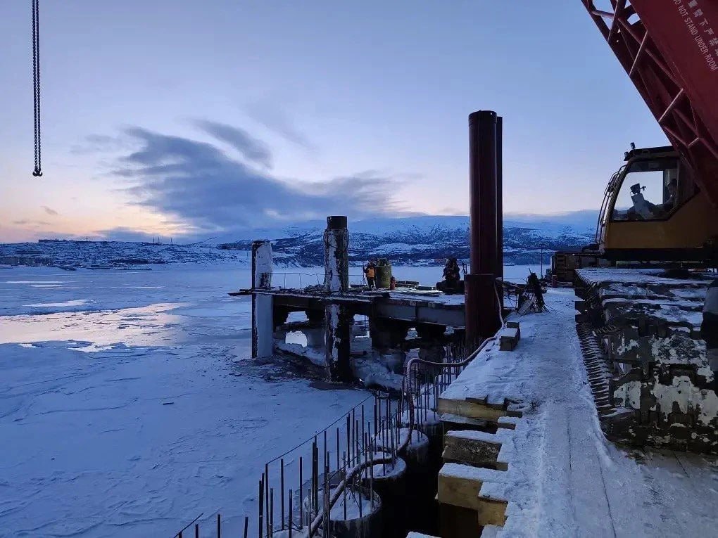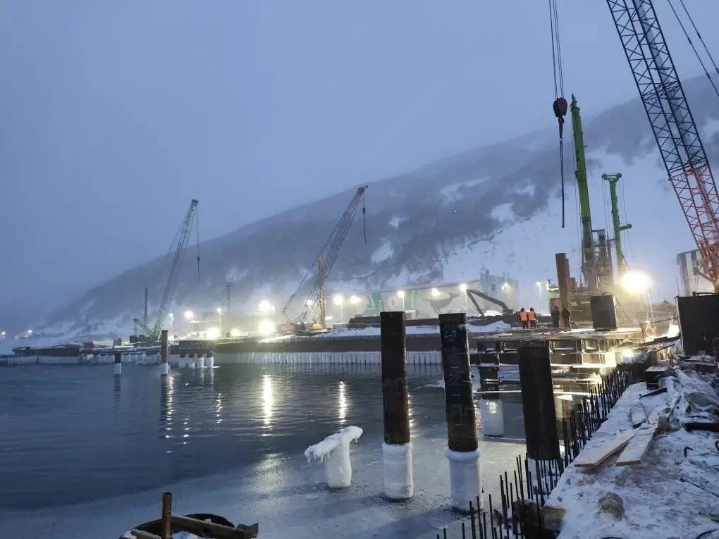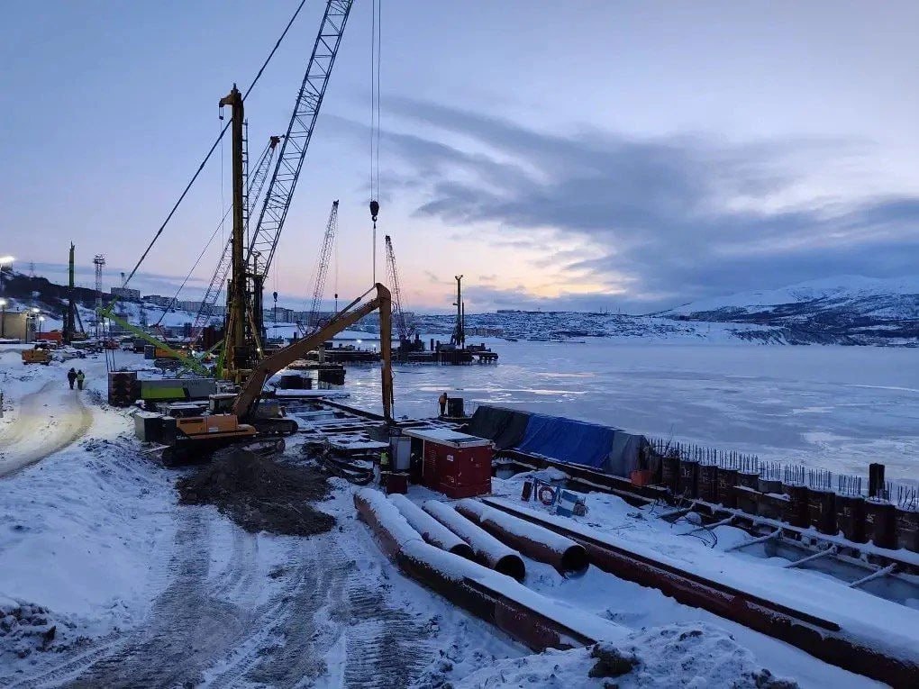 погружение свай и трубошпунтов эстакады судоподъемного устройства и слипа выполнены на 100 %. Выполнение оставшихся работ запланировано на июнь 2026 года.