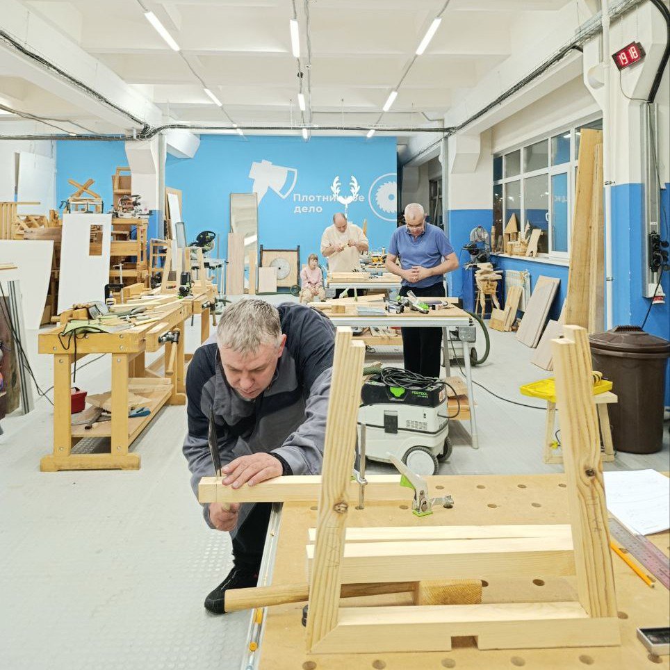 На тренировках участники оттачивают навыки обработки древесины, учатся работать инструментами и выполнять задания повышенной сложности.
