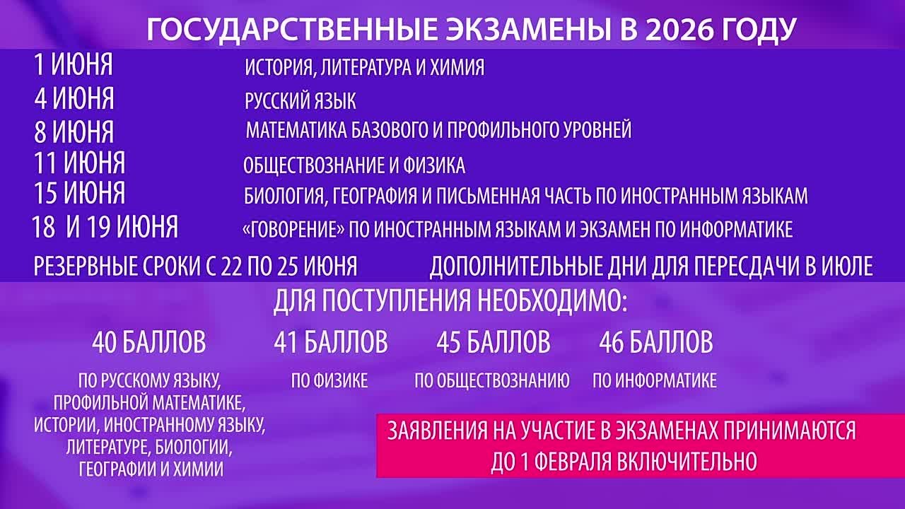 Министерство просвещения утвердило расписание государственных экзаменов на 2026 год. Стали известны все ключевые даты основного периода ЕГЭ, а также минимальные баллы, необходимые для поступления в университеты.