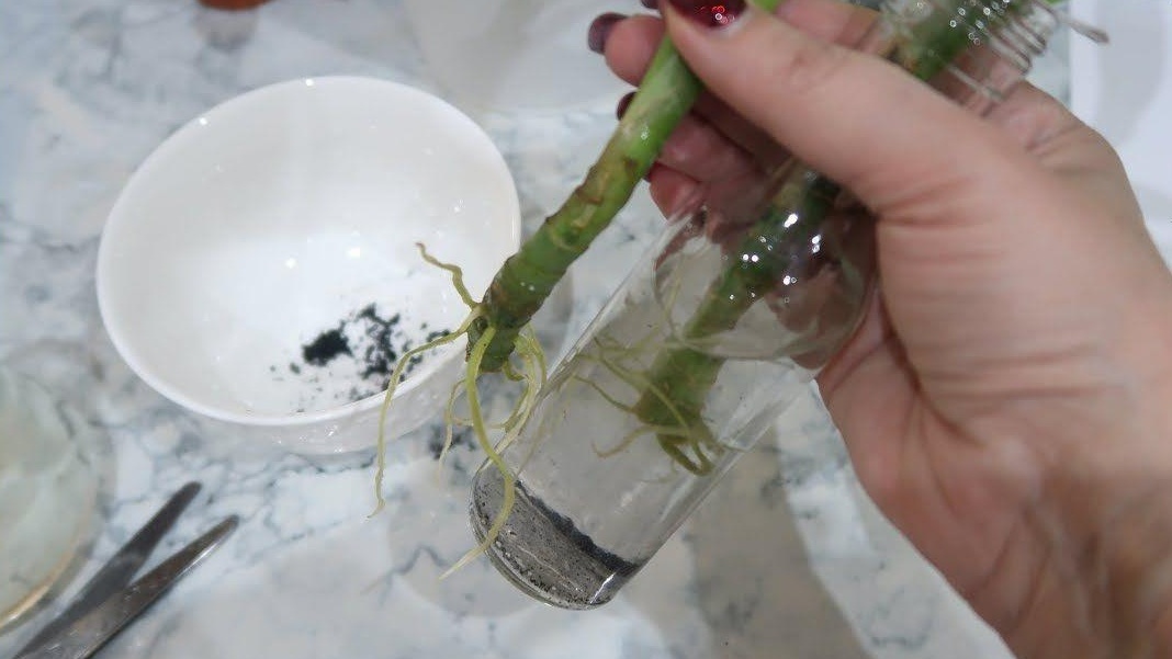 По мере прохождения времени начались изменения. Первые признаки корнеобразования появились у черенков, обработанных корневином и дрожжами, однако наибольшее удивление вызвали черенки в простой воде, которые начали развивать корни на третий неделе.