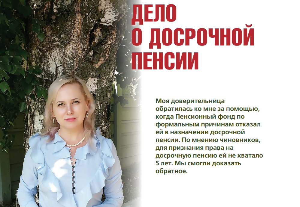К 2017 году, когда Наталья обратилась в Пенсионный фонд с желанием получить заслуженную досрочную пенсию, ей сообщили, что у нее не хватает льготного стажа. Из-за неправильно оформленной должности, ее период в качестве заведующей ФАПом не был признан действительным для получения пенсии.