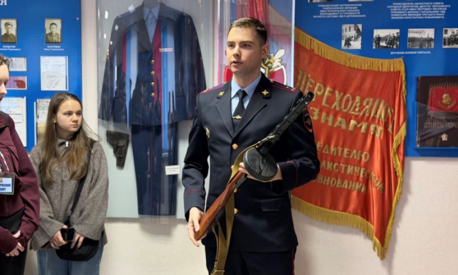Преподаватель цикла учебной части Максим Ермолаев продемонстрировал коллекцию оружия, используемого полицейскими, рассказал о его составных частях и о том, как именно оттачиваются навыки меткой стрельбы.