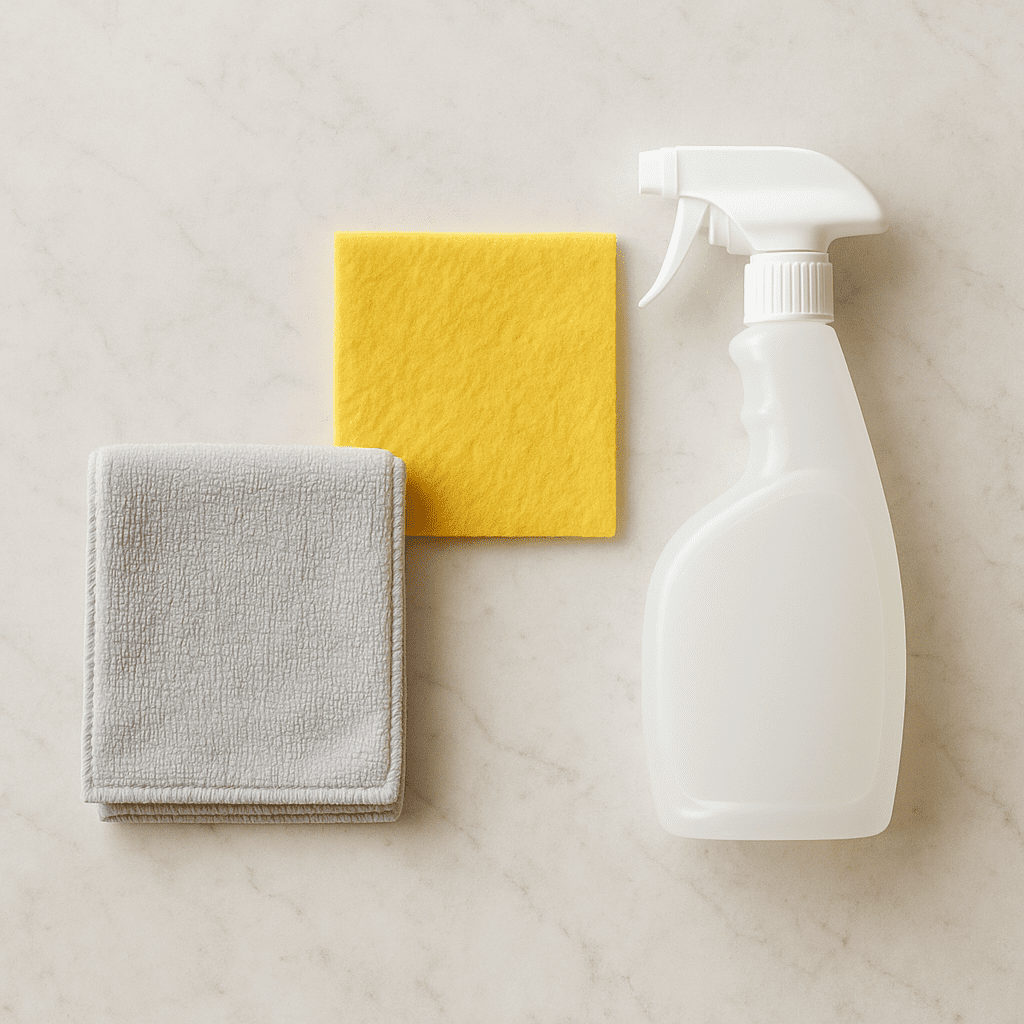 Начинайте с сухой уборки. Используйте тряпку из микрофибры для того, чтобы убрать пыль и мелкие частицы, которые могут поцарапать поверхность. Обязательно осмотрите столешницу на наличие твердых предметов, чтобы избежать повреждений.
