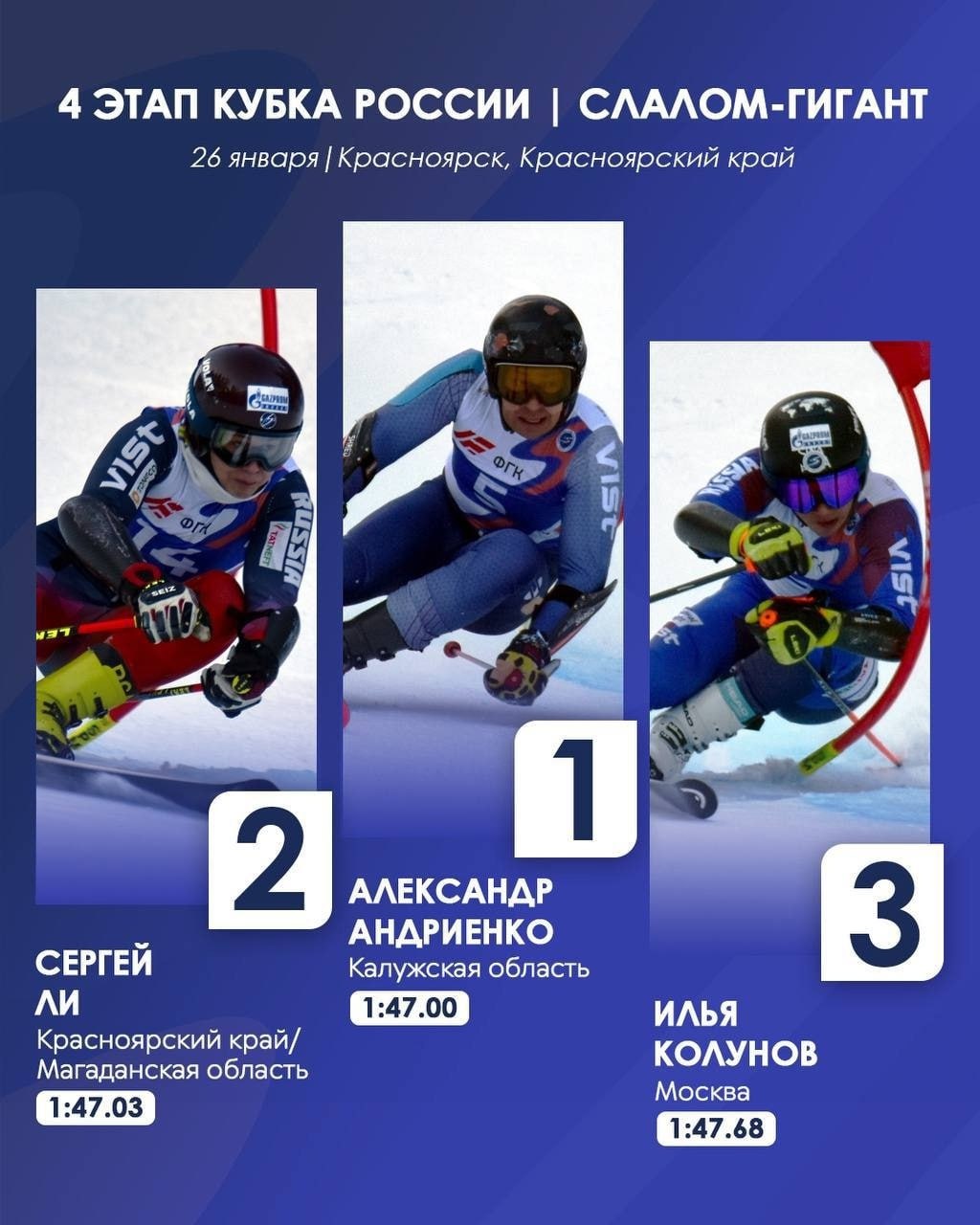 Горнолыжник Сергей Ли завоевал серебряную медаль на четвертом этапе кубка России в дисциплине «слалом-гигант»