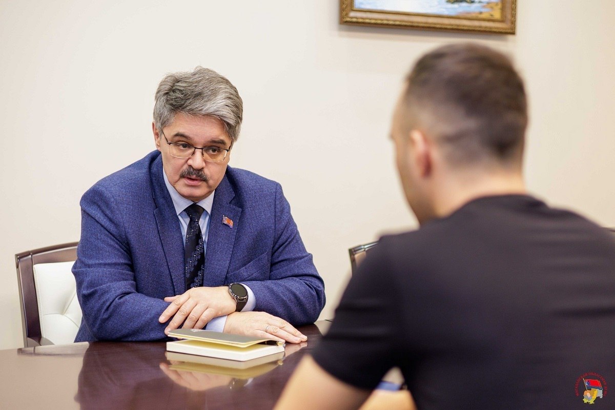 Председатель Магаданской областной Думы Анатолий Широков провел рабочую встречу с участником региональной кадровой программы «СВОи Герои 49» Юрием Лобановым. Ветеран СВО прошел реабилитацию и теперь активно включается в обучение. Вместе с наставником они определили первоочередные задачи: наверстать материал первого модуля и выстроить стратегию освоения всей программы.