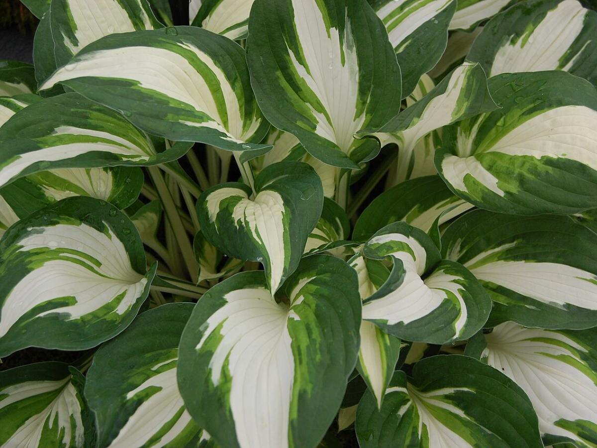 Хосты дарят крупную фактуру и оттенки зелёного, голубого и жёлтого. Они стойко переносят темные зоны и помогают создать глубину ансамбля.