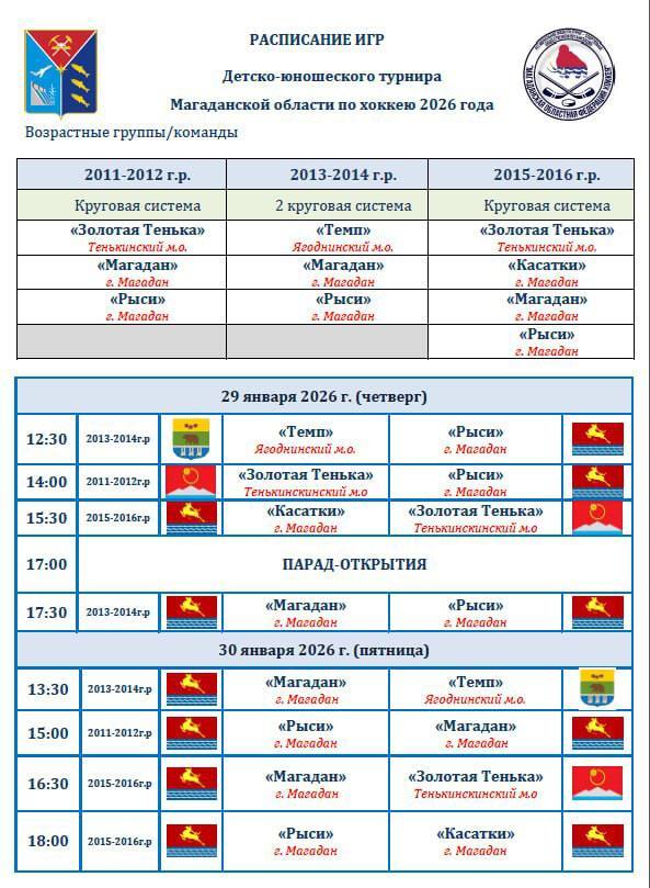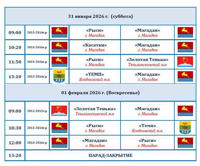 Старт уже в четверг, 29 января. В 12:30 встречаются команд «Темп» (Ягоднинский муниципальный округ) и «Рыси» (Магадан).