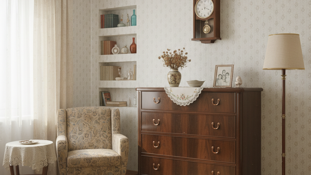 Комод в советских квартирах занимал важное место: его размещали либо в спальне, либо в проходной комнате, чтобы всё было под рукой, но в безопасности от любопытных глаз. Каждый ящик был переполнен вещами, словно хранящими тепло и заботу нескольких поколений.