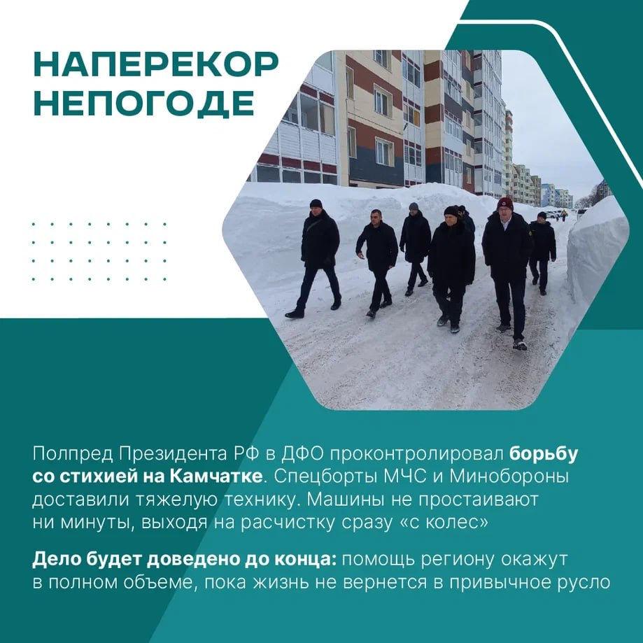 Сейчас в регионе строятся новые курорты, устраняются последствия мощного циклона на Камчатке, работают предприятия-гиганты, важные для суверенитета страны, в Центре «ВОИН» воспитывают поколение, которое будет развивать наш округ.