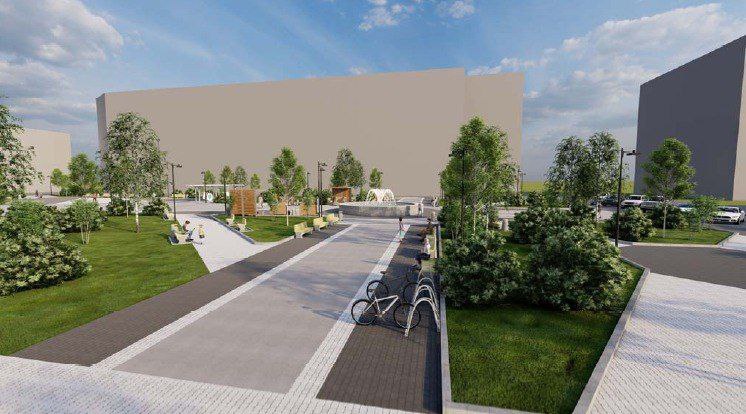 На территории мы предусмотрели укладку новой тротуарной плитки, устройство лестничных сходов, также здесь появятся удобные скамейки, велопарковка, обновим чашу фонтана.