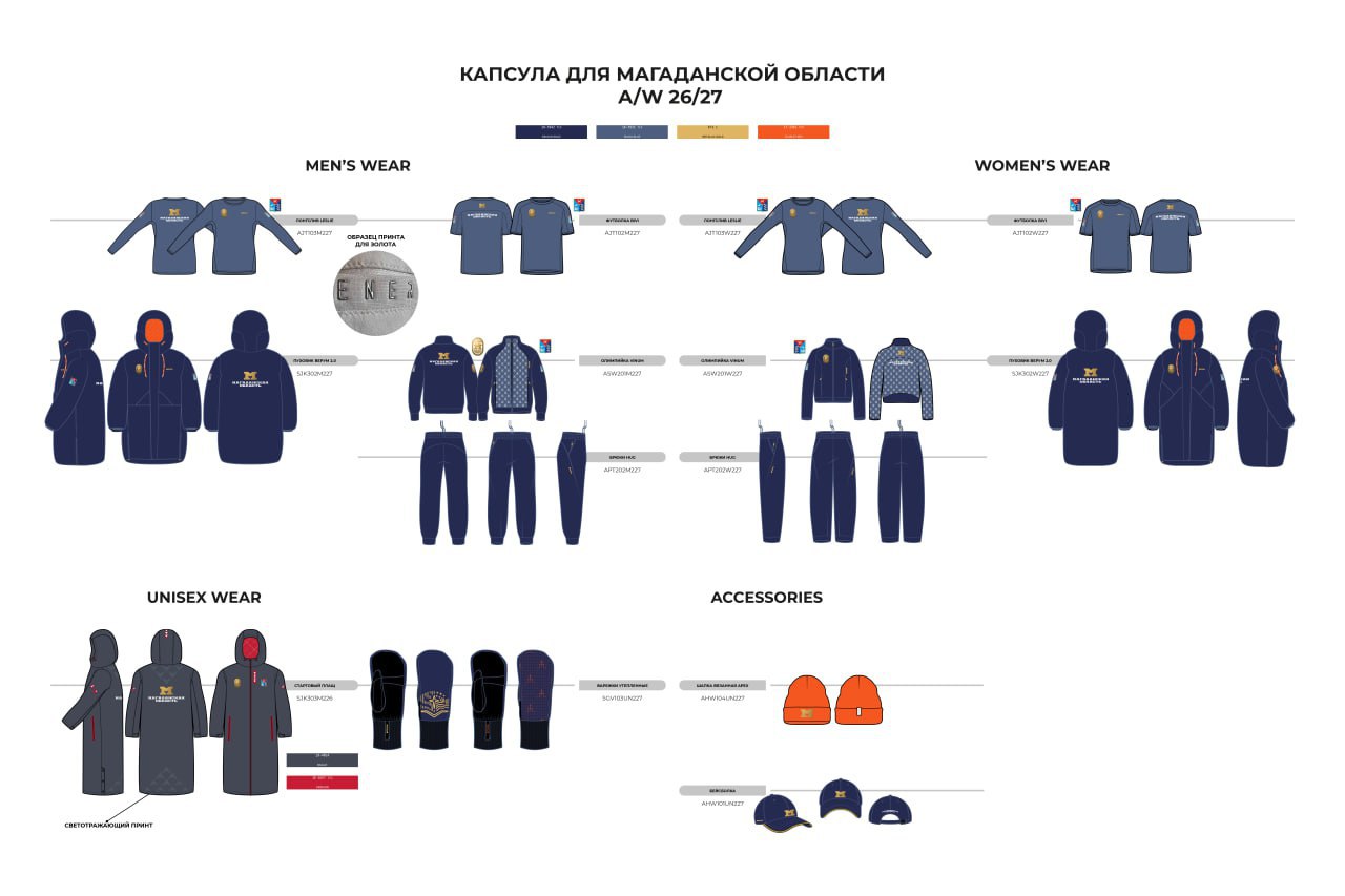 По информации Павла Берегового, пошивом займется российская компания Bivium – официальный поставщик экипировки сборной России по лыжным гонкам. Дизайнеры уже разработали капсулу для наших спортсменов. При создании они вдохновлялись гербом и новым брендом Магаданской области. Основные цвета – синий с золотым.