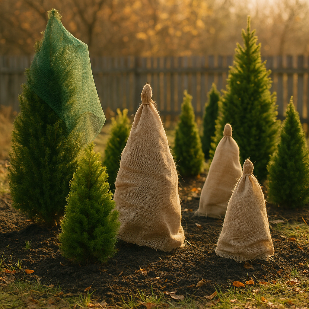 - Теневые сетки: Для больших хвойников подойдет натяжная сетка, которая обеспечивает рассеяние солнечного света, не затрудняя при этом доступ воздуха.