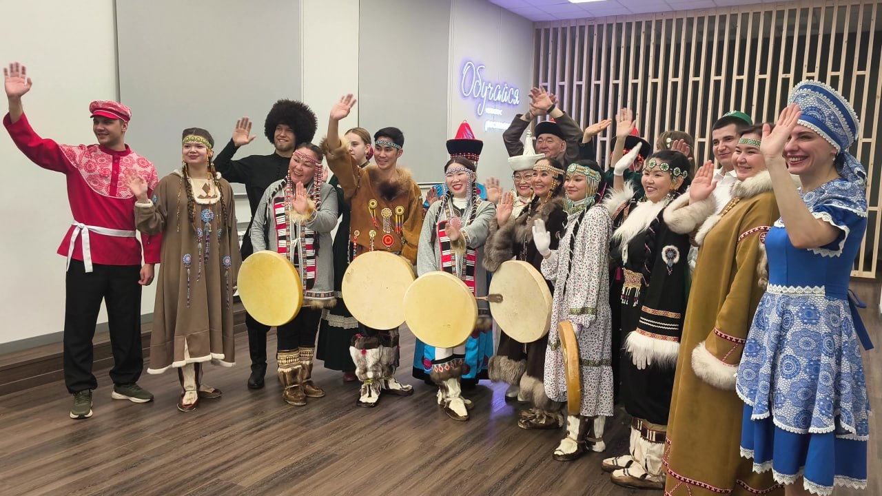 Представители разных национальностей, проживающих в Магаданской области исполнили зажигательные танцы, а также приветствовали всю страну.