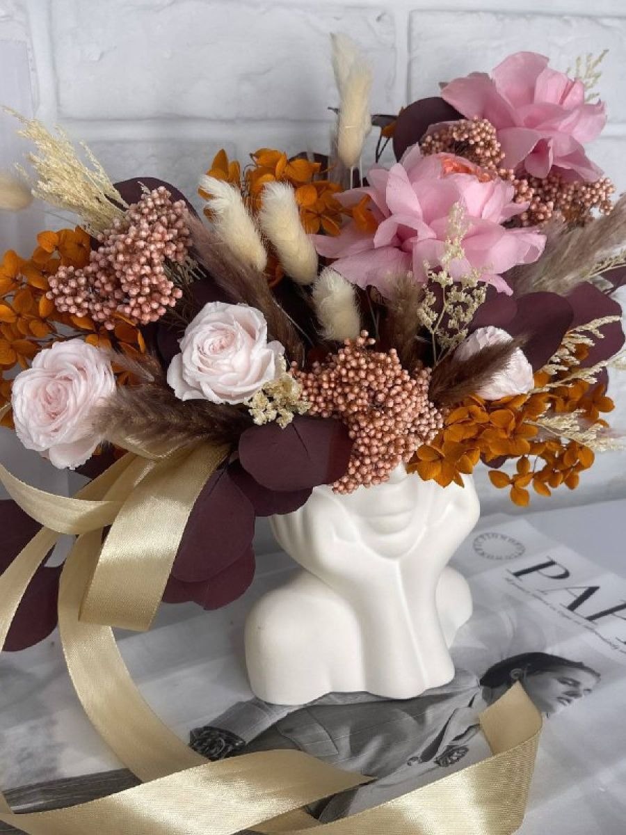 Флористическую мастерскую основала магаданка Юлия Луценко. Небольшой бизнес сегодня набирает популярность у настоящих эстетов, особенно у тех, кто любит, чтобы красота дружила с практичностью. Мастер создает композиции из долгоиграющих цветов, пропитанных особым составом: они будут радовать глаз владелицы не менее года, а то и все 5 лет.