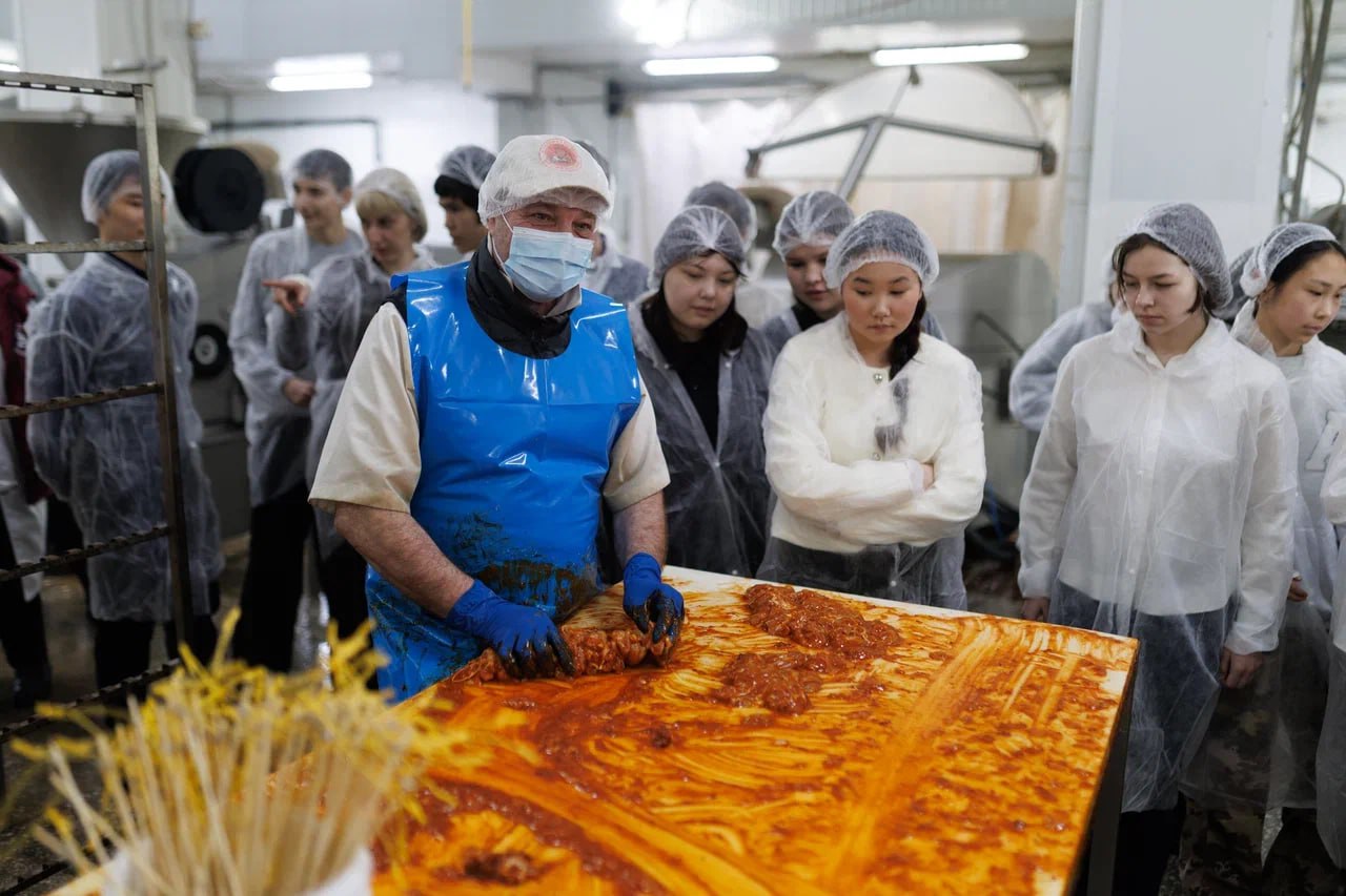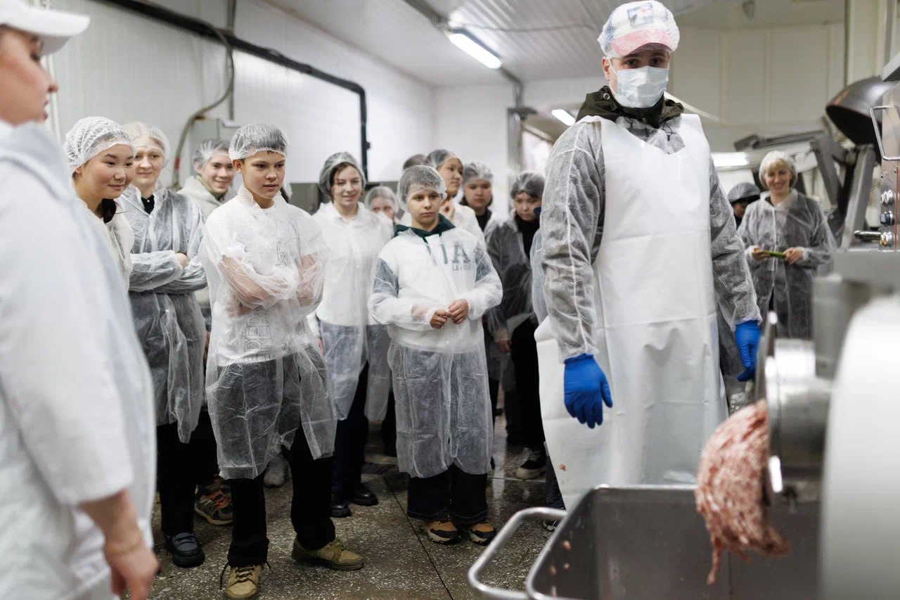 Колымским школьникам показали, как на свет появляются мясные деликатесы, сосиски и колбаса