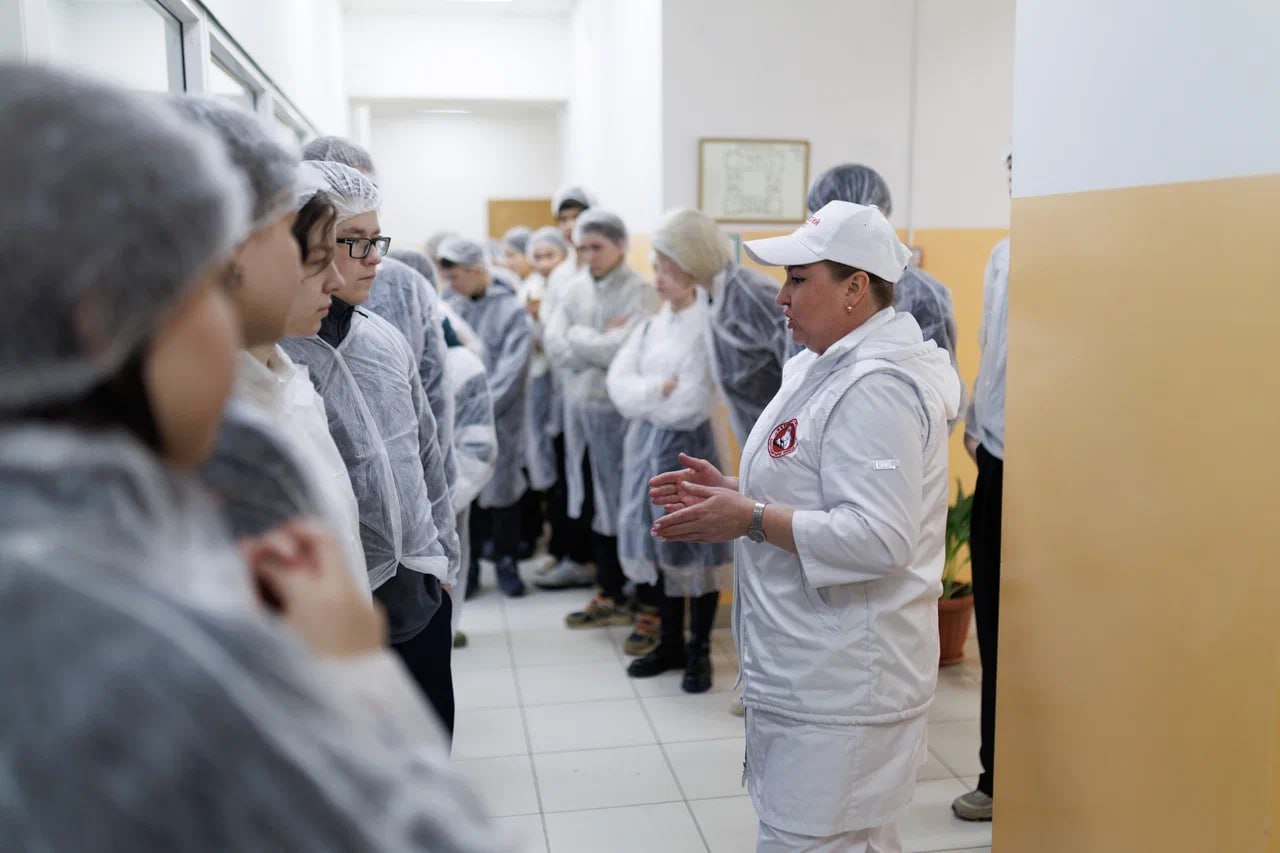 В рамках реализации регионального проекта «Кадры в агропромышленном комплексе» национального проекта «Технологическое обеспечение продовольственной безопасности» в ООО «Охотский Берег Плюс» для учеников 8-х классов Ольской школы провели открытый урок, который назвали «Пищевая промышленность: интересно, вкусно, полезно».