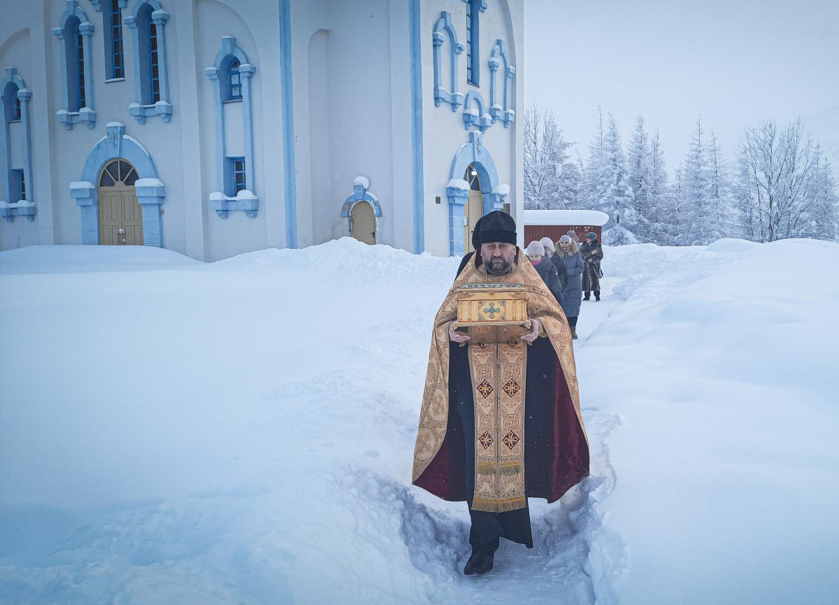 А в воскресенье, 8 февраля, в соборе состоялась праздничная Литургия, по окончании которой ковчег с честной главой святого был перевезен для дальнейшего поклонения верующих в поселок Дебин, тот самый, где берега могучей Колымы соединяет мост.