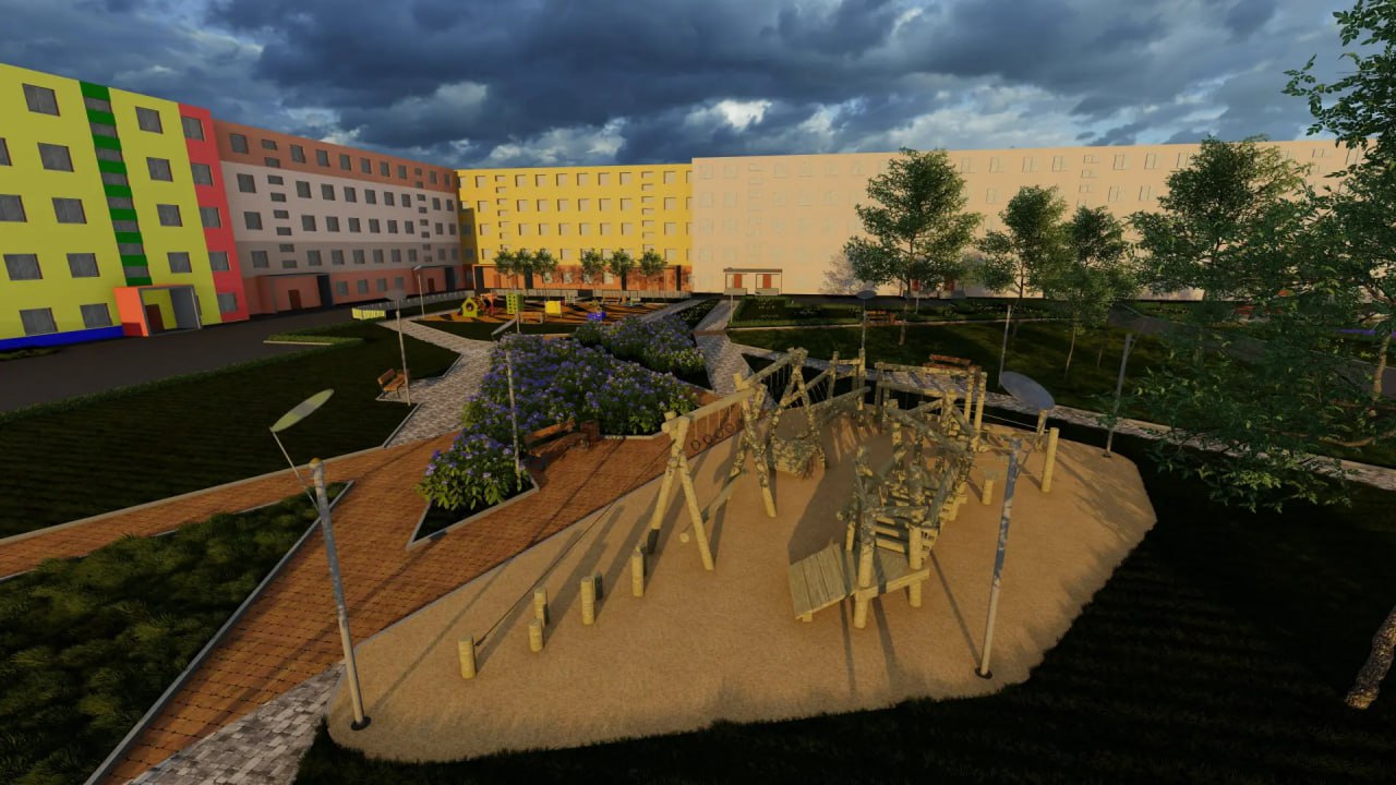 В рамках проекта планируют уложить плитку на дорожки, травмобезопасное покрытие и установить игровой комплекс с полосой препятствий.