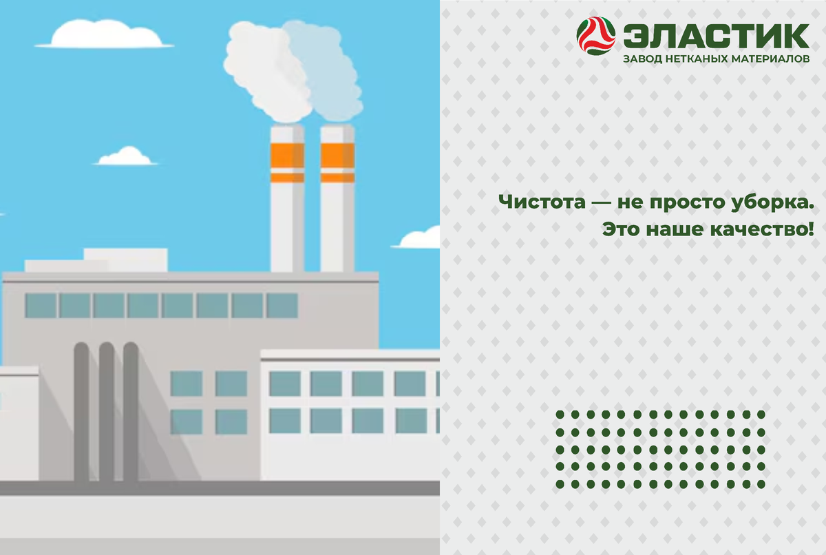 Чистота на заводе — это наша общая гордость. Спасибо каждому за вклад в общее дело и поддержание высоких стандартов на Эластике!