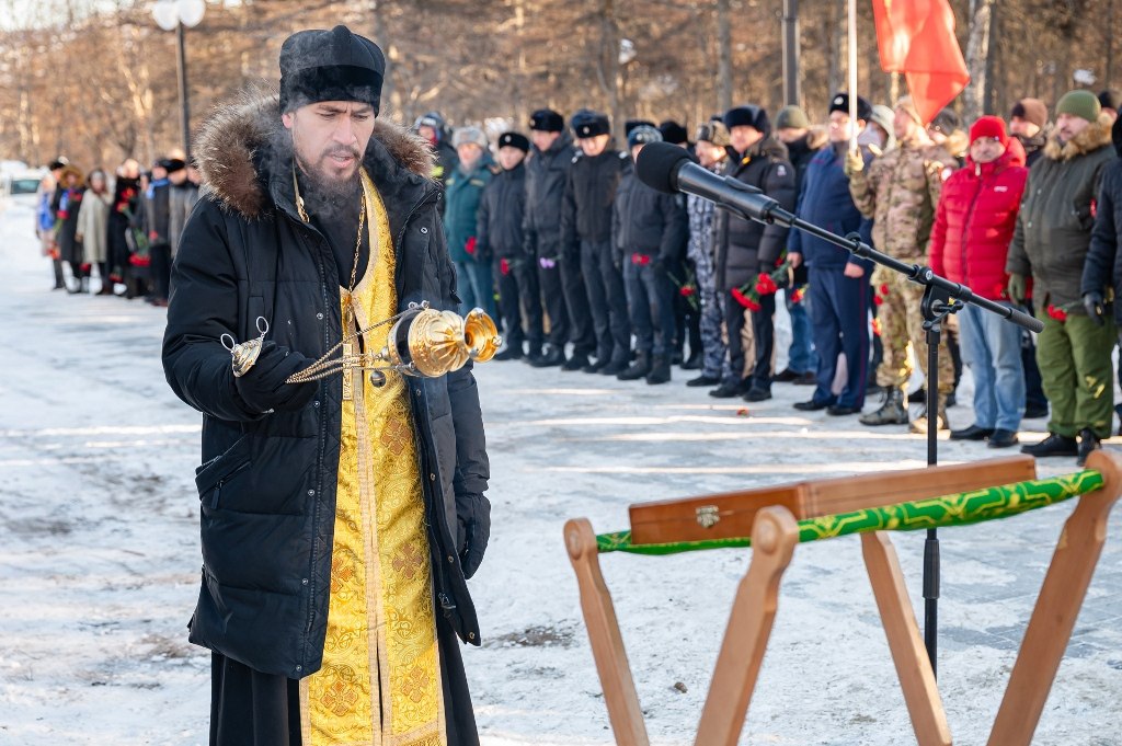 Память павших участники митинга почтили минутой молчания и троекратным оружейным залпом. Представители Магаданской и Синегорской епархии отслужили заупокойную литию.