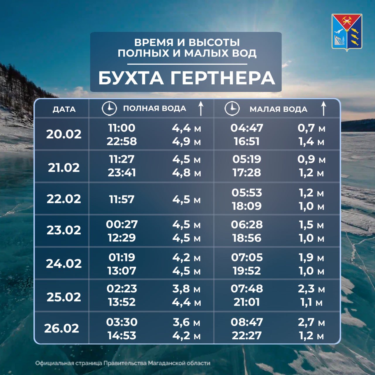 Магадан: от -10 до -18 , ночью и утром облачно, затем ясно.Ола: от -9 до -19 , переменная облачность.Палатка: от -11 до -25 , ночью облачно, затем ясно.Усть-Омчуг: от -22 до -42 , ясно.Ягодное: от -25 до -41 , ясно.Сусуман: от -27 до -44 ...