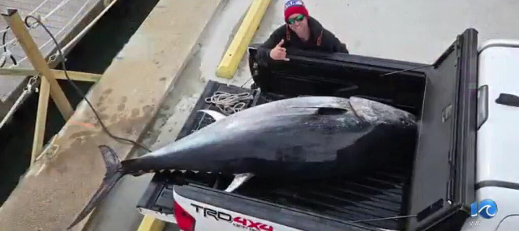 На побережье штата Вирджиния команда рыбаков с борта судна High Hopes сделала удивительный улов: они поймали колоссального синего тунца весом 379 килограммов. Это событие стало настоящей сенсацией и украсило местные новости благодаря изданию WAVY.