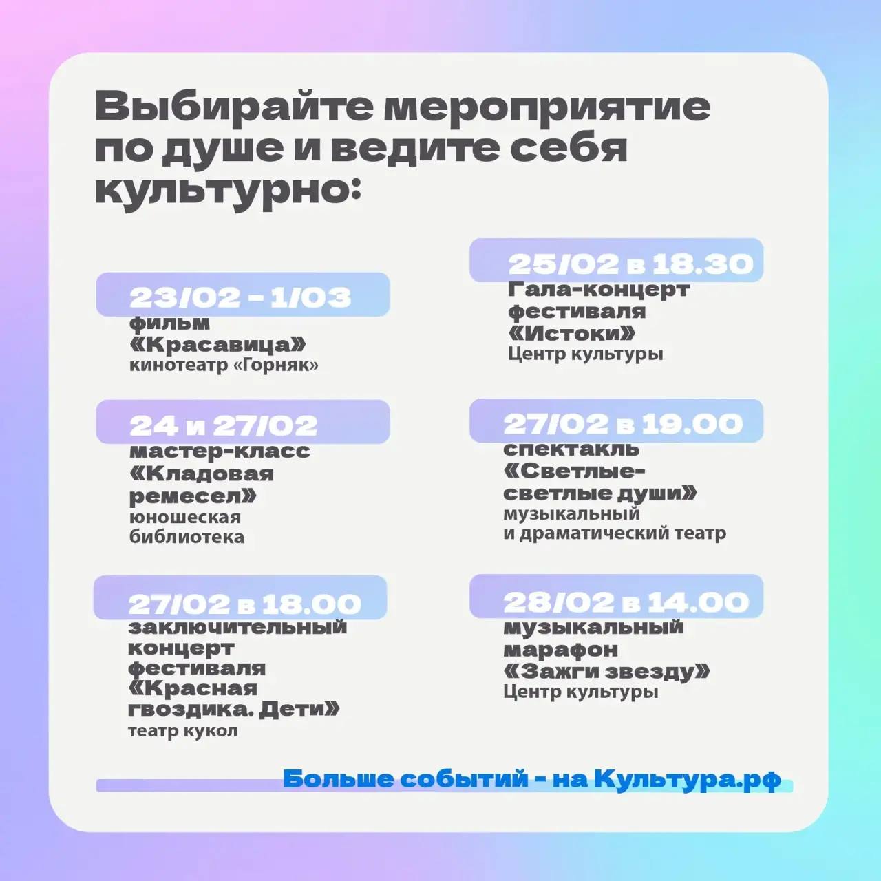 Больше событий вы найдете на портале «Культура.рф» по ссылке.