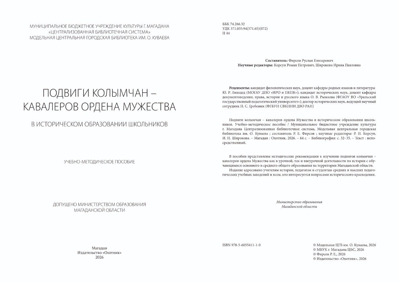 Куваевская библиотека выпустила учебно-методическое пособие «Подвиги колымчан – кавалеров ордена Мужества в историческом образовании школьников»