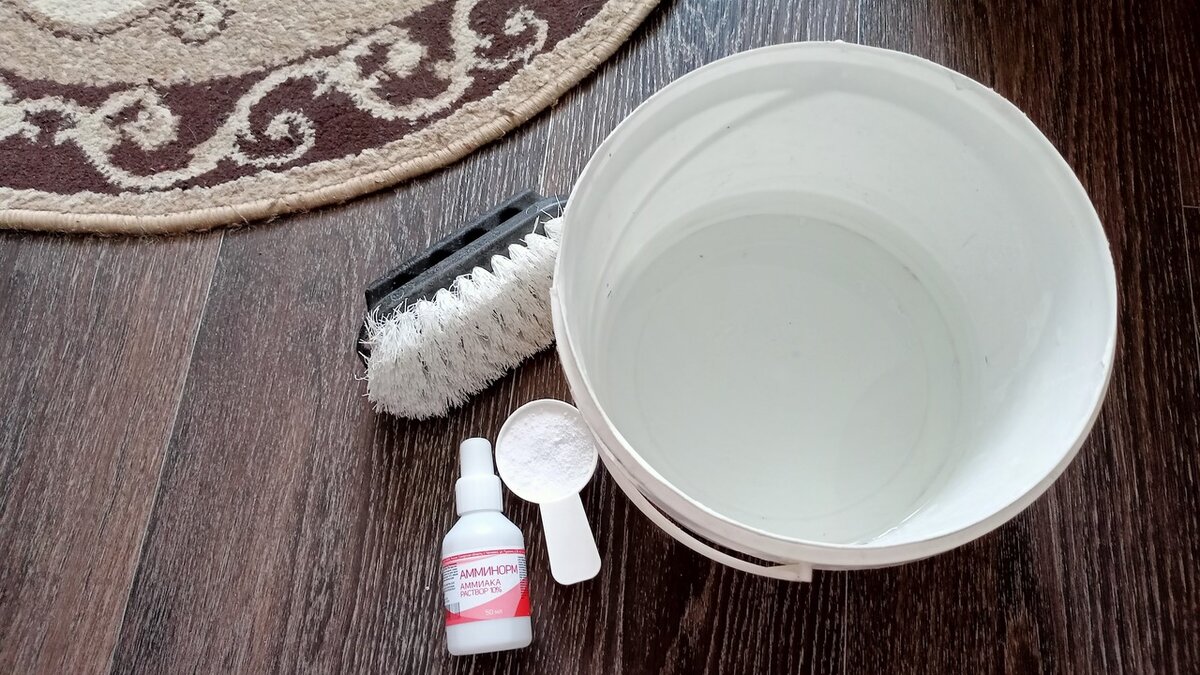 Все составляющие аккуратно смешиваются, чтобы порошок полностью растворился. Для этого удобно использовать щетку для одежды, которая поможет создать пену. Не забывайте надеть перчатки: аммиак имеет резкий запах, и в чувствительных людям может вызвать дискомфорт. Если ощущается сильный запах, рекомендуется работать в хорошо проветриваемом помещении или на улице. Также следует убрать животных из зоны работы.