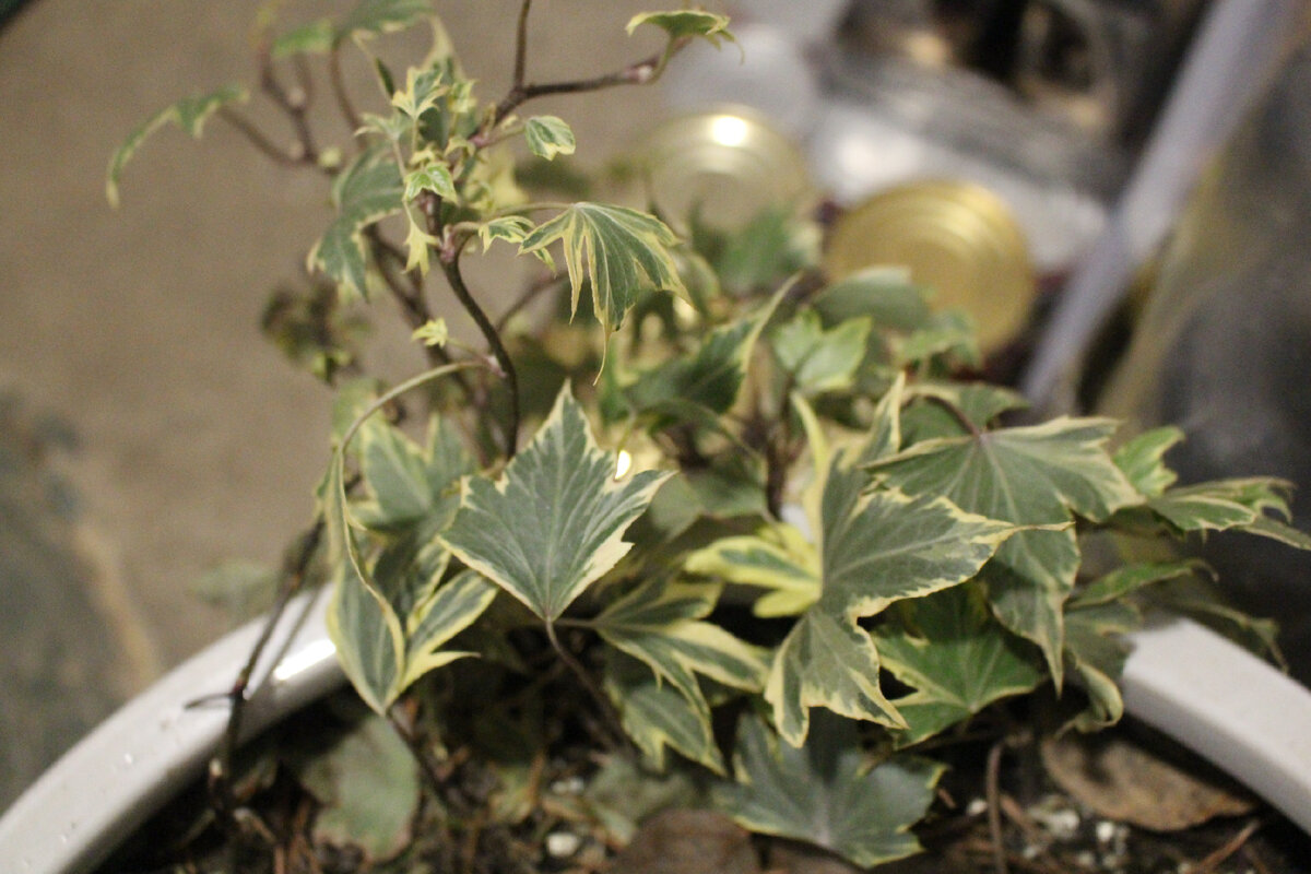Один из общепризнанных заговорщиков – плющ обыкновенный «Yellow Ripple». Это растение, приобретенное в недорогом садовом магазине, не способно зимовать на открытом воздухе. В данный момент оно укрыто в овощехранилище, вместе с розой, где растения прекрасно перезимовали при минимальном освещении.