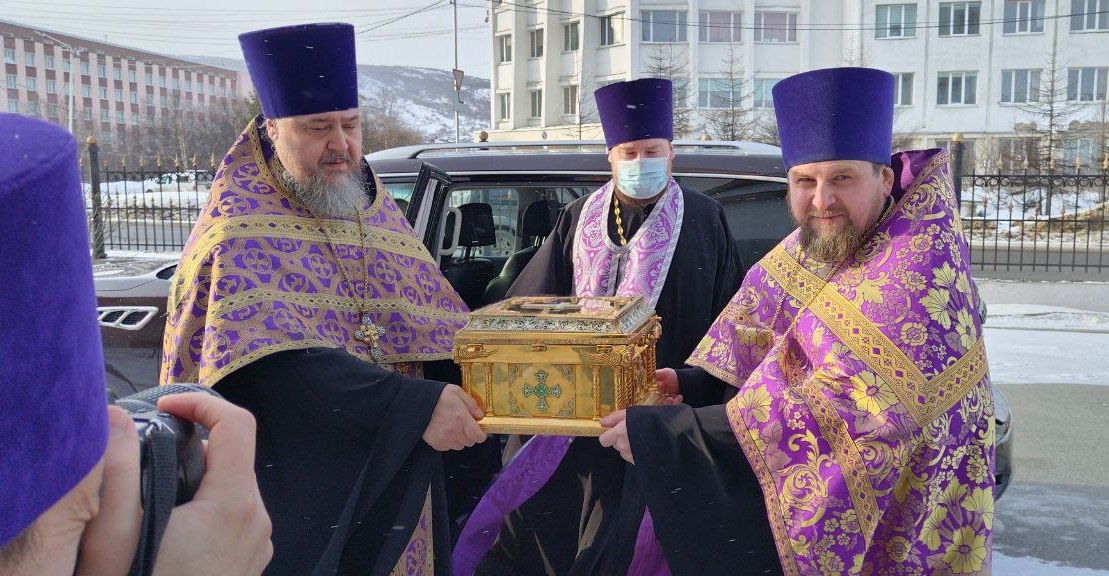 Магаданцы торжественно встретили мощи святителя Иннокентия в Свято-Троицком соборе