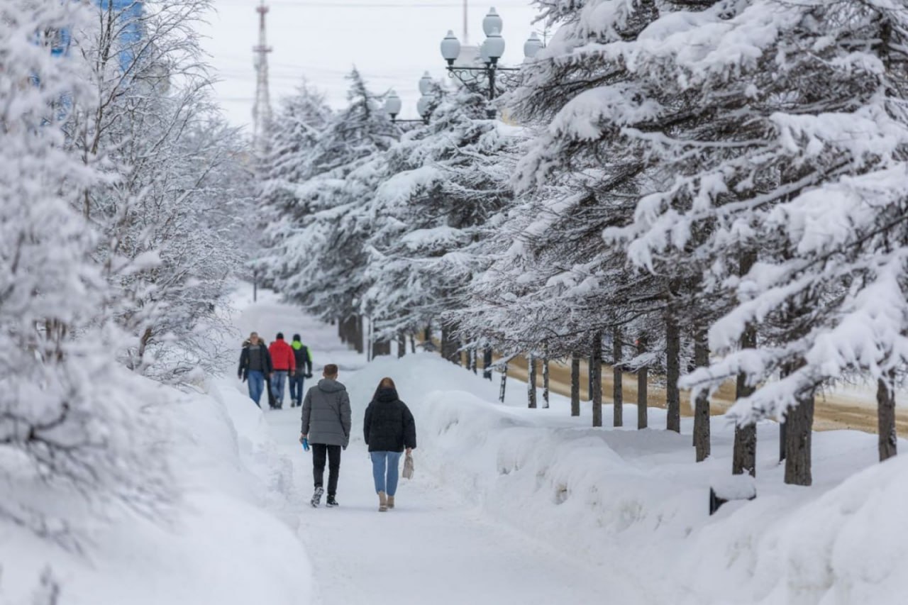 В Магадане -5, -7°C, снег