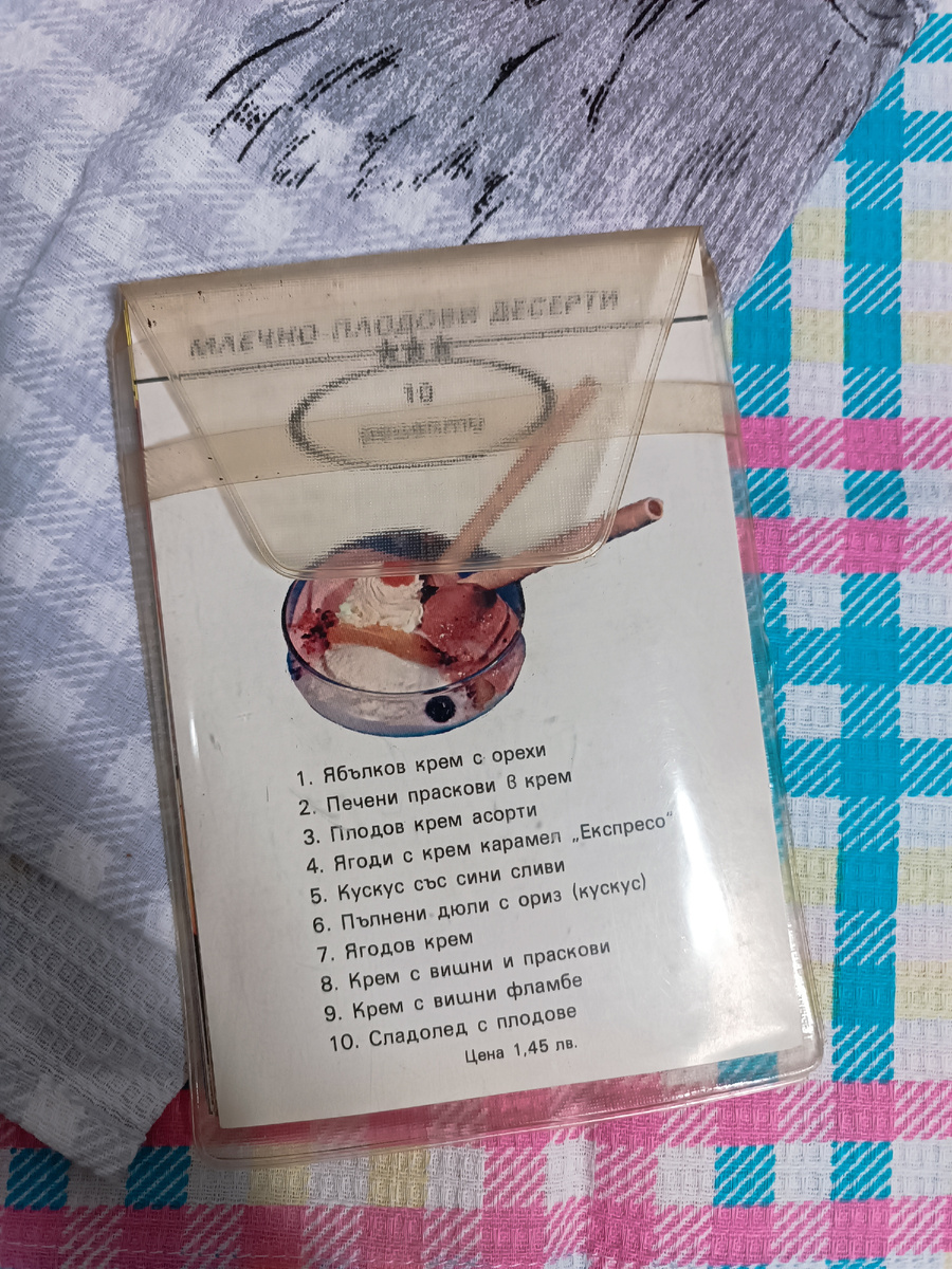 Стоимость набора составляет 1,45 лева, а его современная цена достигает 69,34. Время выпуска этого кулинарного шедевра — 1986 год, точную стоимость в то время сложно определить.