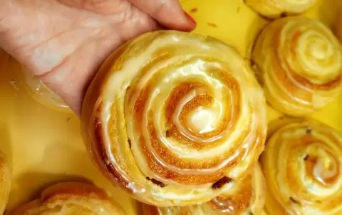 Простой состав глазури – сахарная пудра и свежевыжатый апельсиновый сок. Этот способ не требует желатина или яиц, что делает его не только быстрым, но и полезным. При красивом белоснежном цвете глазури, она не высохнет в корку, оставаясь мягкой и ароматной.