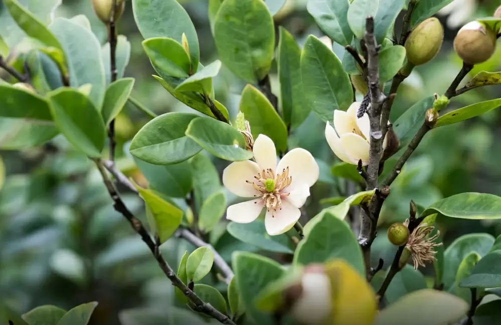 Магнолия буроватая, известная также как «банановый куст», удивляет своим нежным ароматом спелых бананов, который начинает распространяться в конце зимы. Эти компактные кустики с глянцевыми листьями требуют солнечного света и аккуратного полива — именно их запах способен создать атмосферу тропического рая даже в самые холодные месяцы.