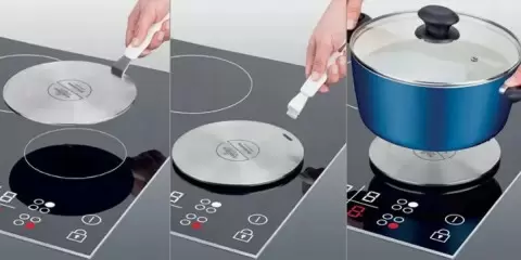 - Индукционный адаптер: Это специальный диск, который кладется на конфорку. Он нагревается и передает тепло кастрюле. Такой вариант позволяет использовать любую посуду, но может замедлить процесс приготовления.
