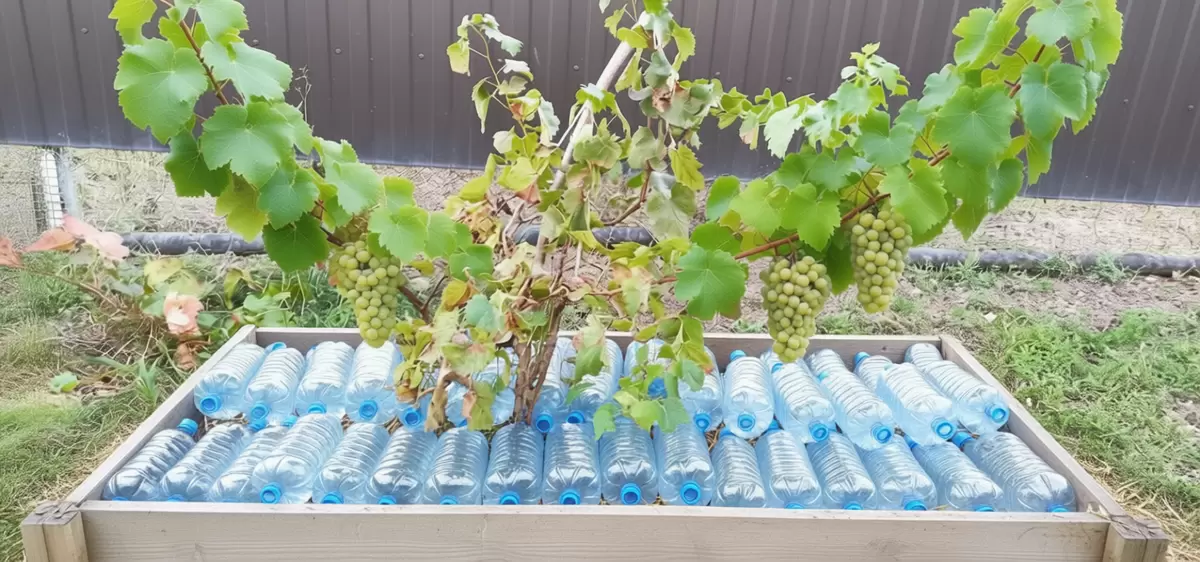 - Температурный аккумулятор: Тёплая вода в бутылках аккумулирует тепло и постепенно его отдает, не давая растениям замерзнуть.
