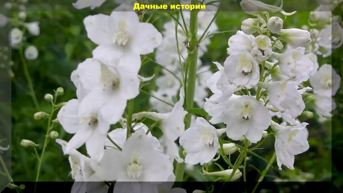 - "Дочь зимы" — дельфиниум, который завораживает своими снежно-белыми цветами;